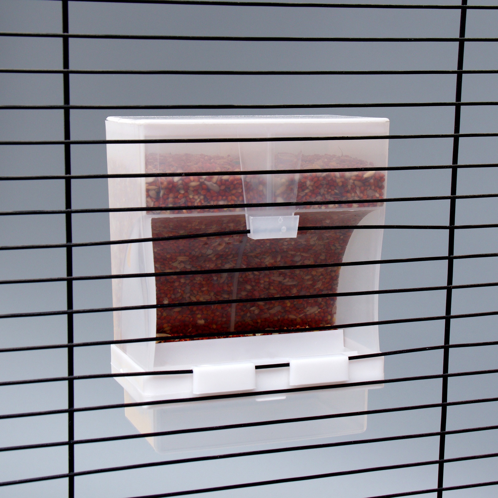 Легкость установки: Простая конструкция позволяет быстро установить кормушку в клетку или на вольере. Закрепите ее надежно, и она готова к использованию!