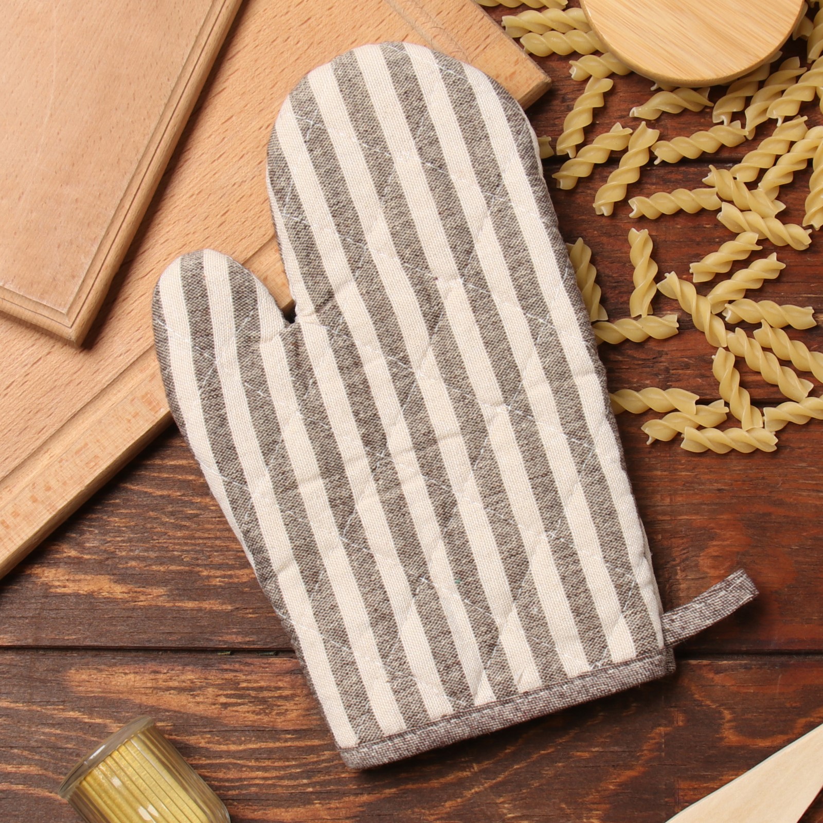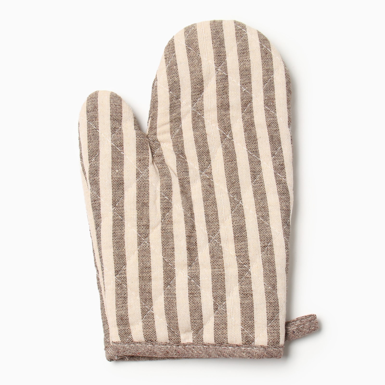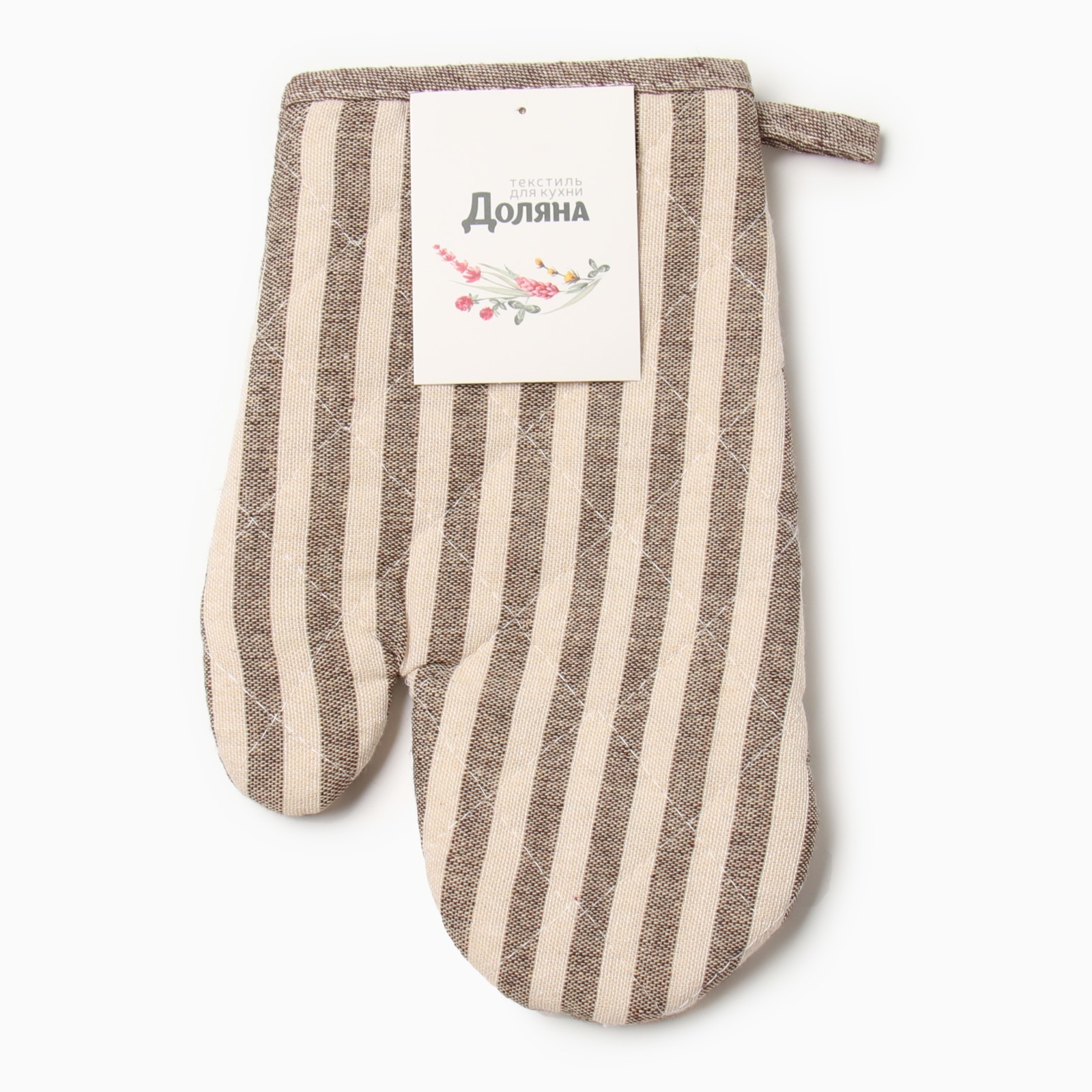 Варежка-прихватка «доляна. полоса», коричневая, 25 17 см, 50% п/э, 50% хлопок