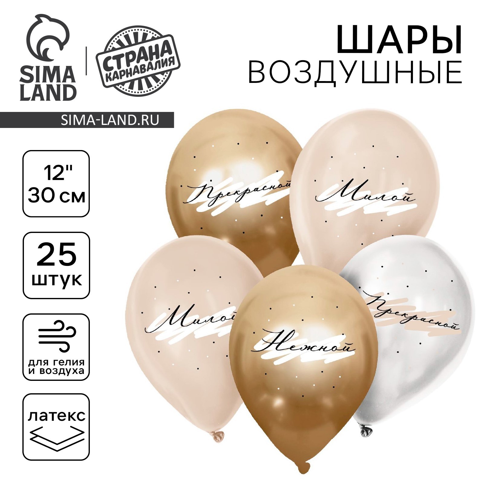 Набор:Да|Цвет:Белый|Цвет:Бежевый|Диаметр, дюйм:12|В наборе, шт.:25|Рисунок:Да|Тематика праздника:Универсальная тематика|Адресат:Женщине|Адресат:Любимой|Материал:Латекс|Тематика рисунка:Комплименты|Вид шара:Классический|Надувка шара:Воздухом|Надувка шара:Гелием|Язык надписи:Русский|Оттенок:Хром|Оттенок:Пастель|Страна:Россия