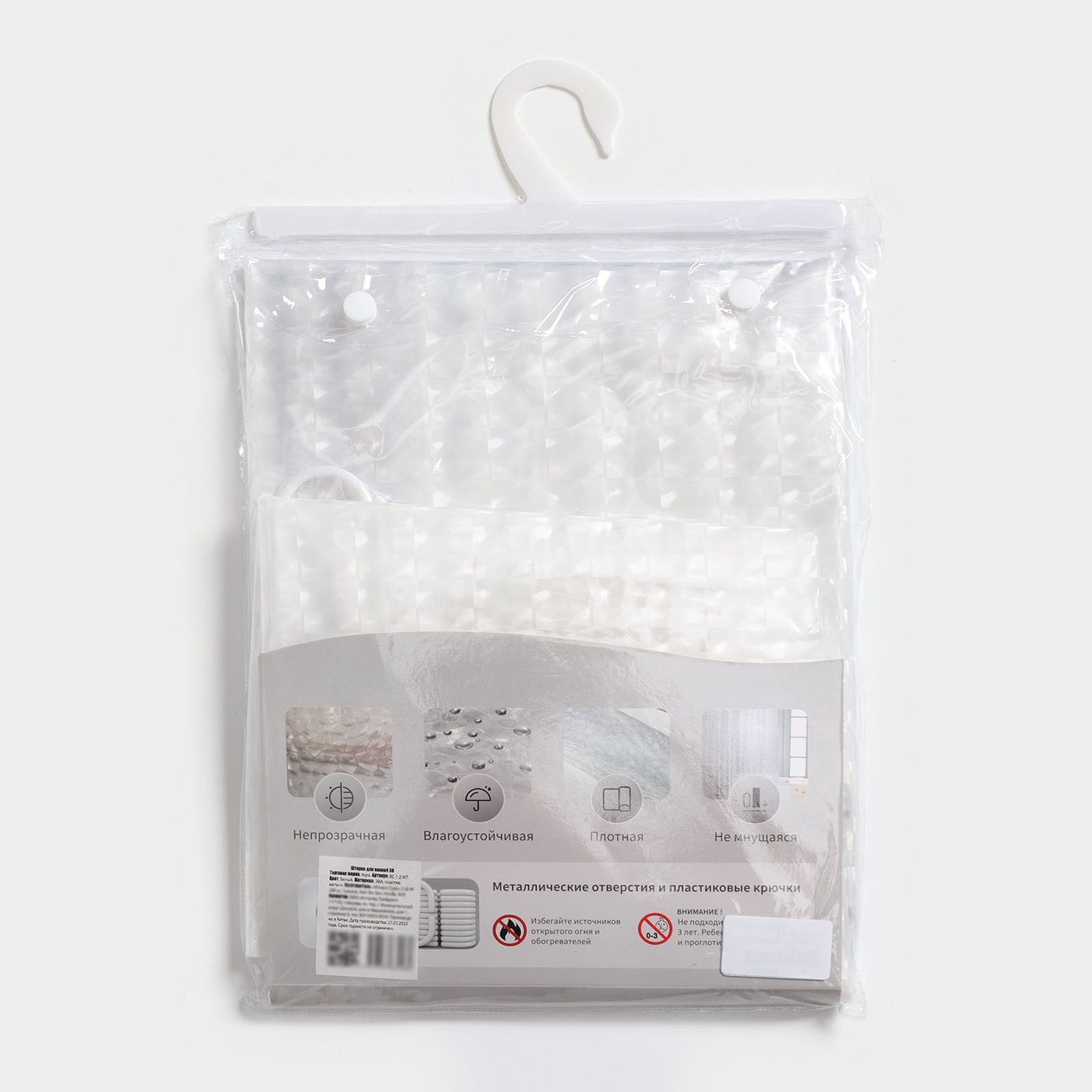 Штора для ванной комнаты, 180x180 см, 12 колец, 3d эффект, Peva, цвет белый