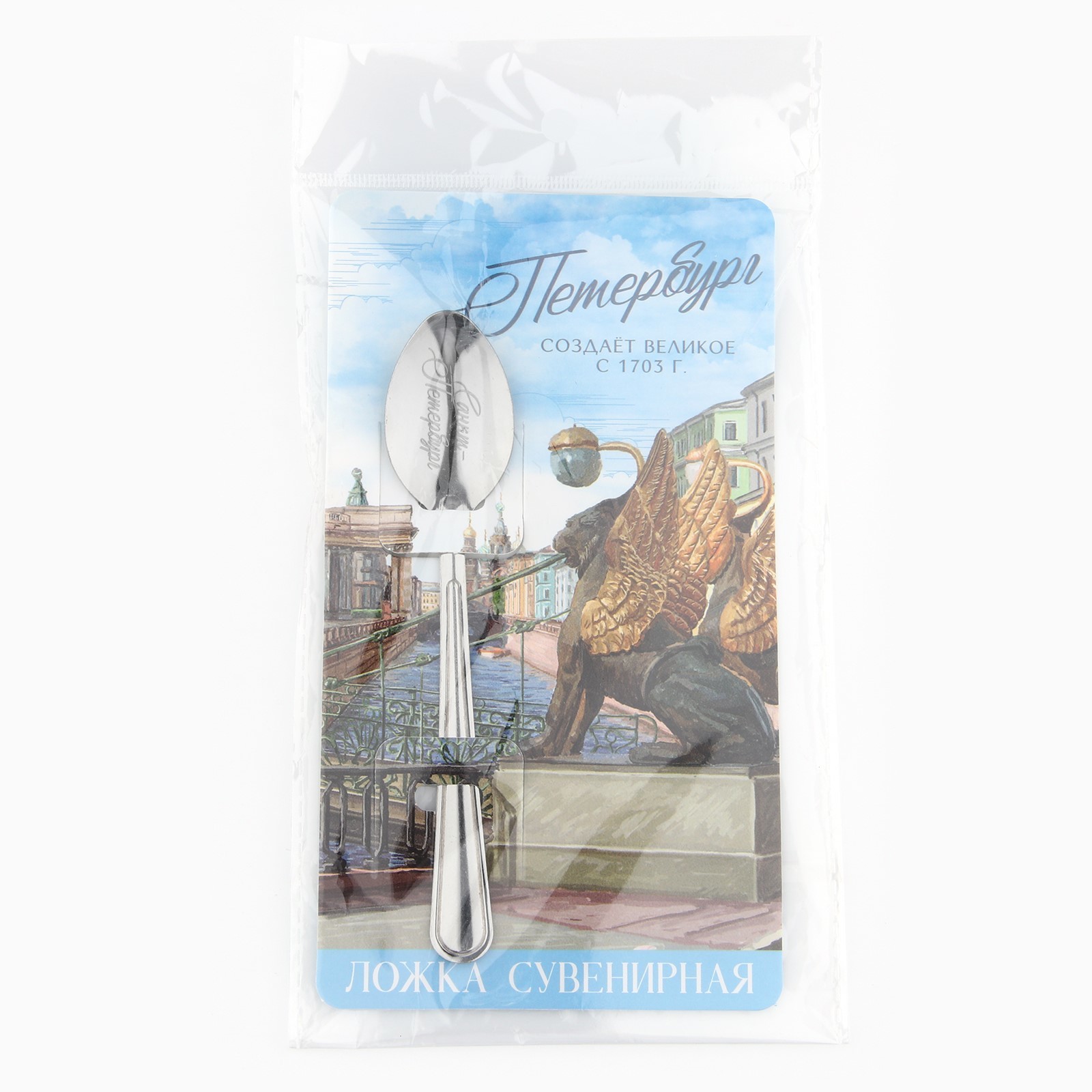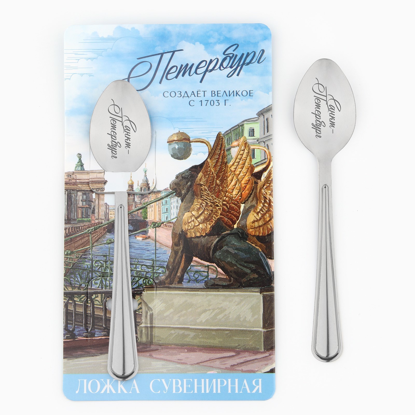 Ложка с гравировкой на открытке «петербург», 3 х 14 см.