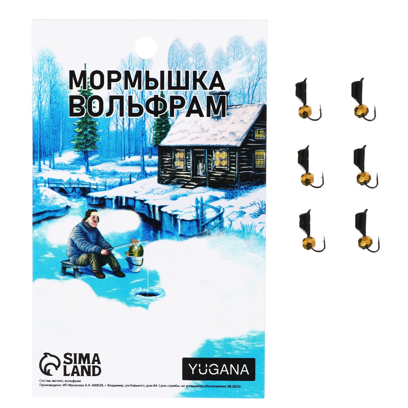 Мормышка столбик чёрный, лайм глаз + шар гранен золото 0.8 г