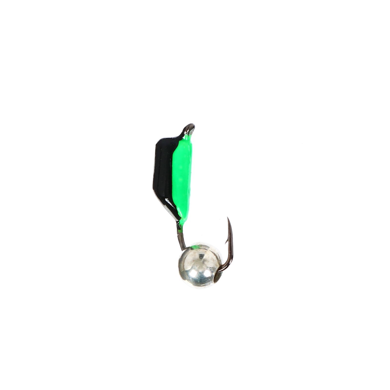 Мормышка столбик чёрный, зелёное брюшко + шар серебро, вес 0.9 г