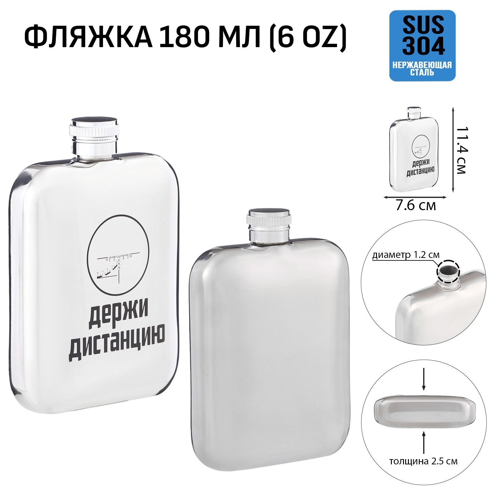 Фляжка для алкоголя "дистанция", нержавеющая сталь, подарочная, 180 мл, 6 Oz