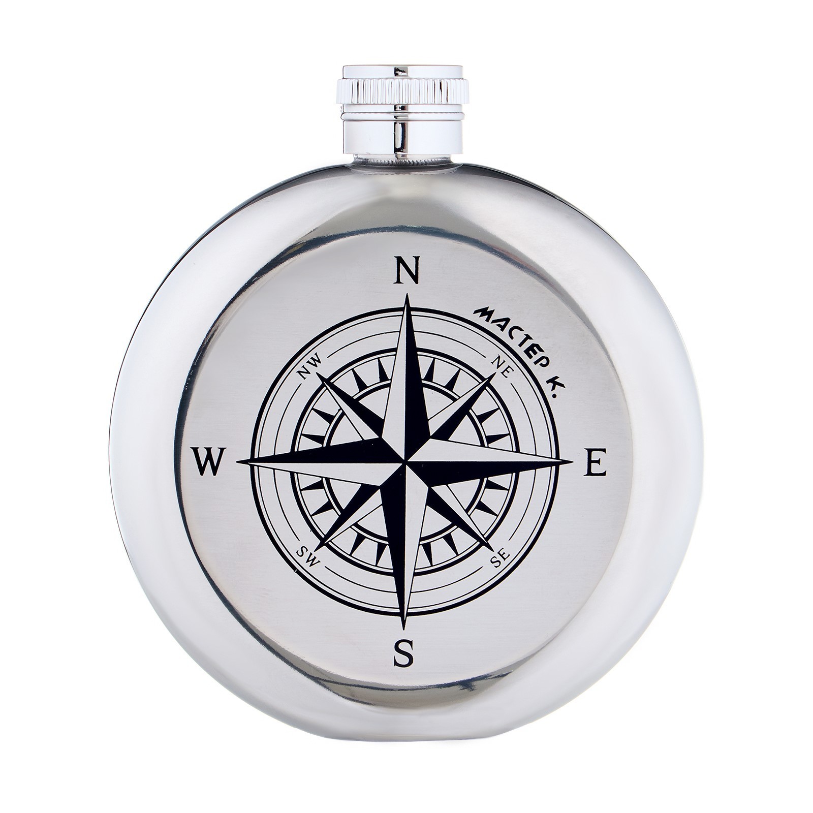 Фляжка для алкоголя "компас", нержавеющая сталь, подарочная, армейская, 150 мл