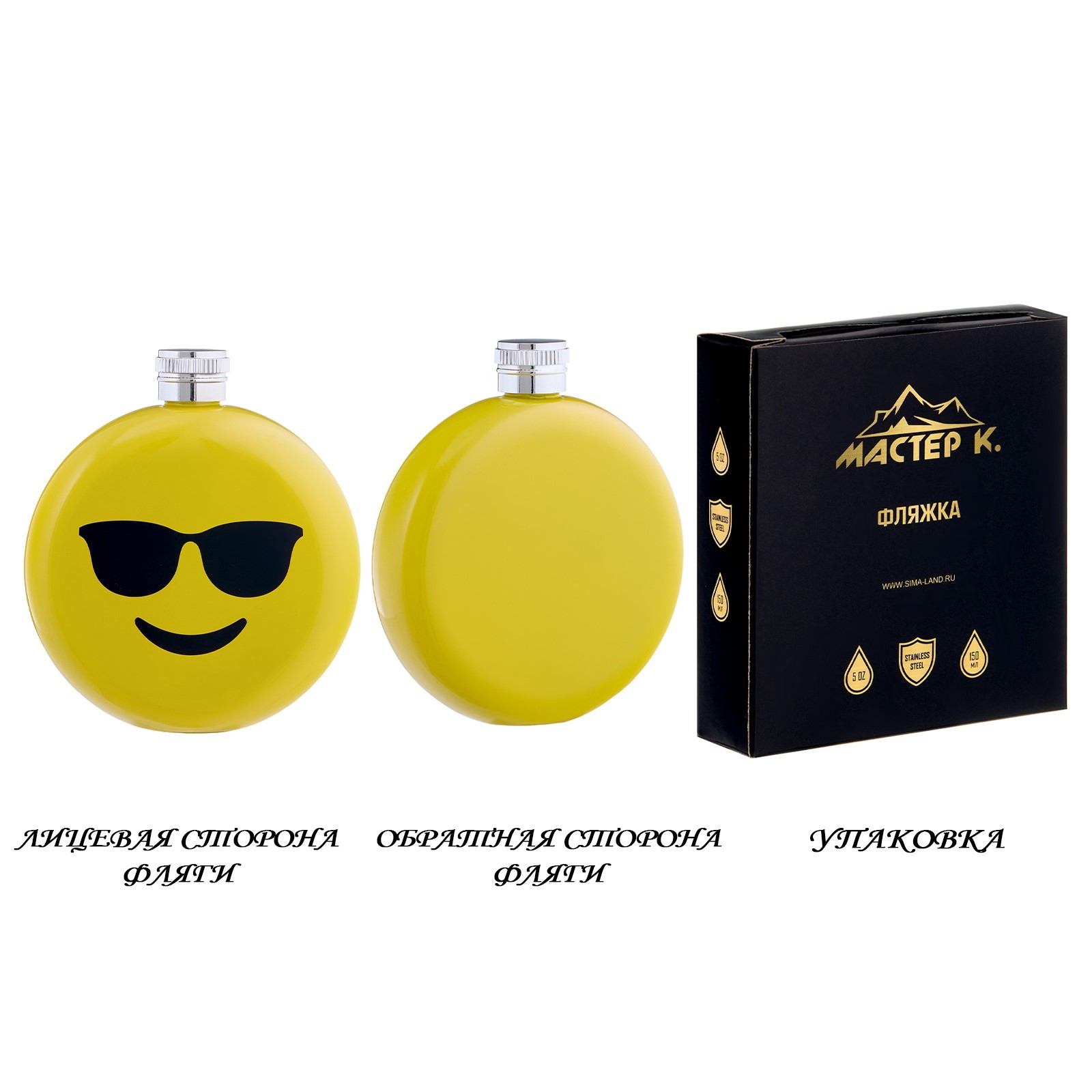 Фляжка для алкоголя "смайл", нержавеющая сталь, круглая, подарочная, 150 мл