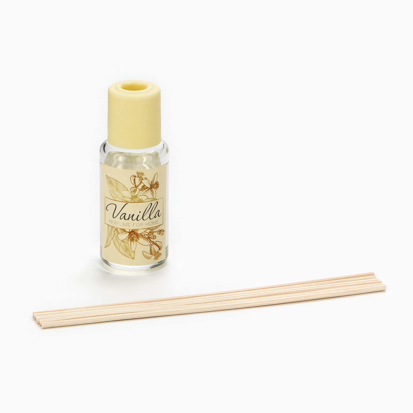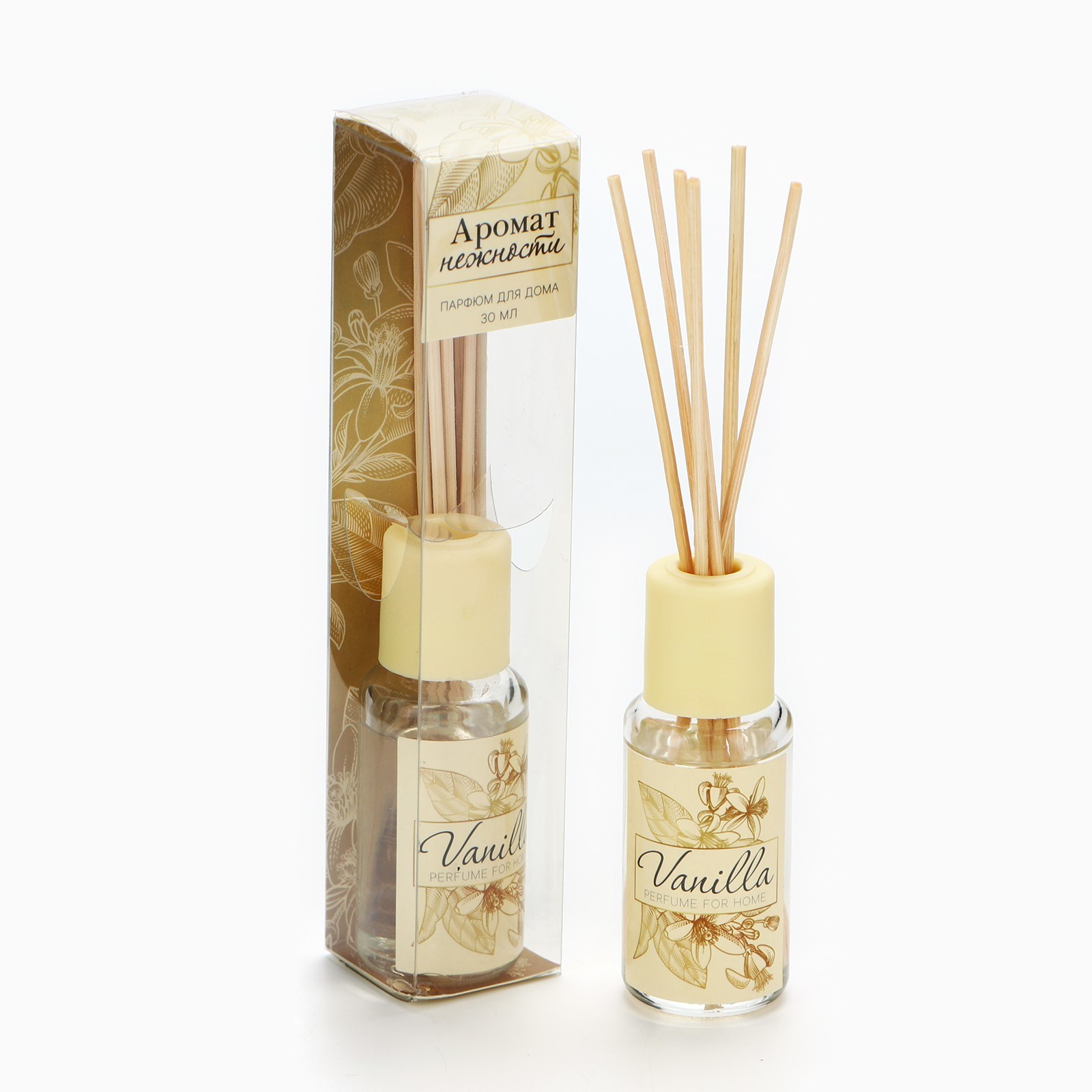 Диффузор ароматический «аромат нежности», аромат ваниль, 30 мл.. Ароматический диффузор «Аромат нежности» с ароматом ванили - это прекрасный способ создать уютную и комфортную атмосферу в вашем доме. Диффузор выполнен в красивой стеклянной бутылочке с деревянными палочками, которые впитывают аромат и распространяют его по комнате. Аромат ванили создает ощущение тепла и уюта, а также обладает успокаивающим эффектом. Диффузор «Аромат нежности» - это идеальный подарок для себя или близких, который поможет создать в доме атмосферу тепла и комфорта. ПрименениеИзвлеките диффузор из упаковки, откройте крышку и защитный колпачок, опустите палочки в ароматизированную жидкость и наслаждайтесь. Ароматизированная жидкость пропитывает палочки, и с их помощью аромат распространяется по всему помещению. Объём, мл: 30 Вид ароматизатора: В бутылочке Аромат: Ваниль  развернуть описание ▼