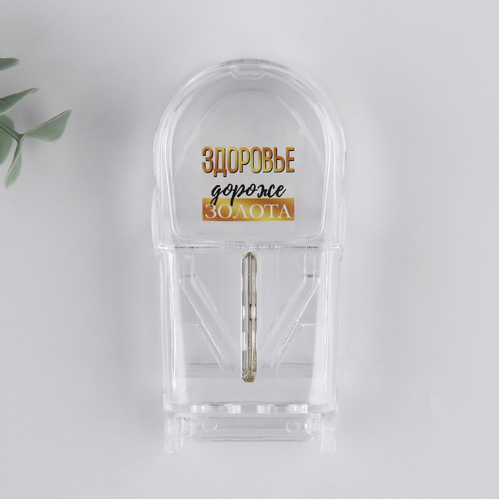Таблетница с делителем «здоровье дороже золота», 1 секция, 8.5 х 4 х 2.5 см.. Компактный органайзер изготовлен из пластика безопасного для использования. Предназначен для хранения витаминов и таблеток. Контейнер для таблеток на день послужит компактной аптечкой, которую можно взять на работу, в отпуск, в командировку или для поездки загород на несколько дней. Контейнер органайзер для таблеток подойдет активным людям, которым необходимо принимать лекарства несколько раз в день или же несколько дней подряд вне дома. Цвет: Прозрачный Количество секций: 1 Количество дней: 1 Материал: Пластик Вид: Таблетница Вид: Контейнер  развернуть описание ▼