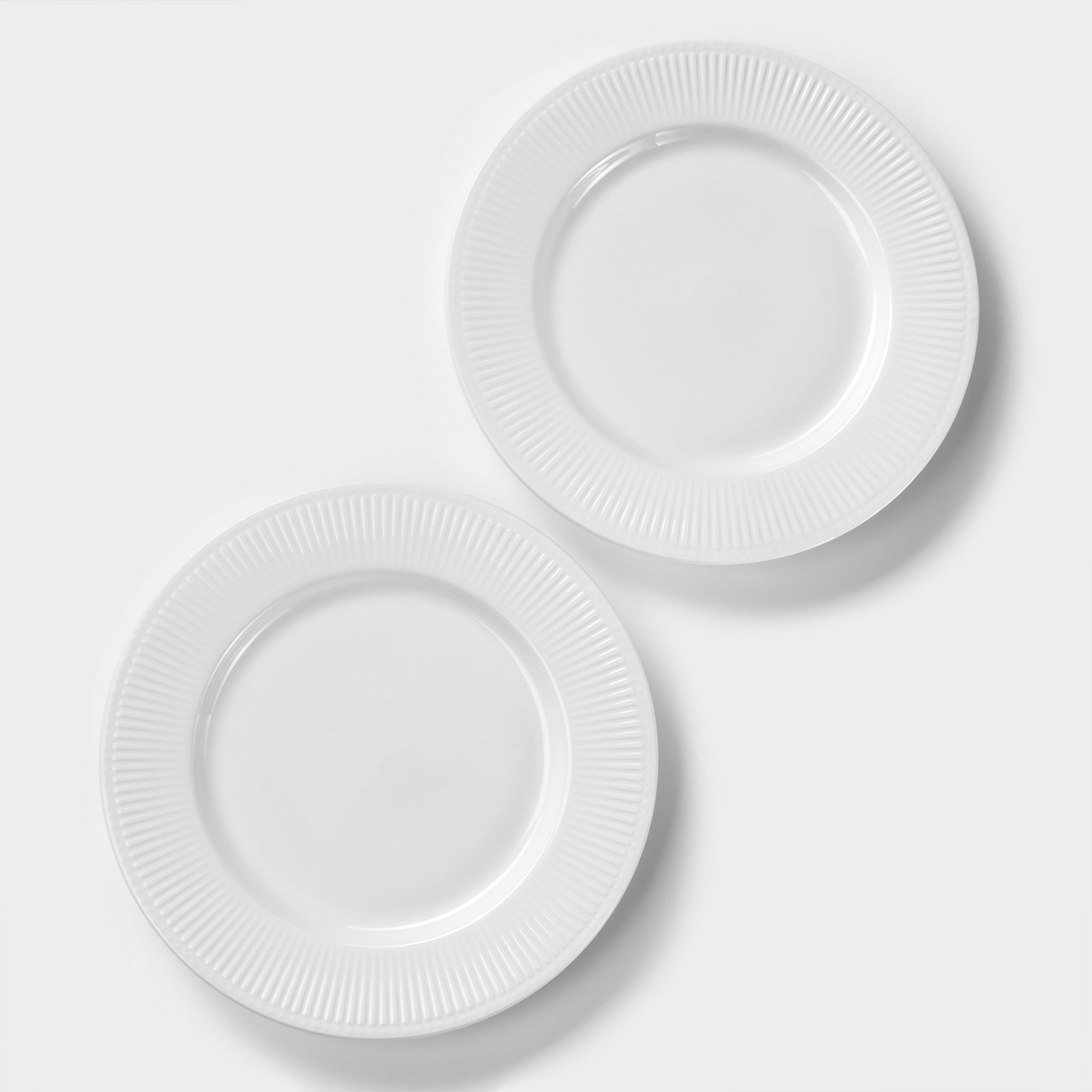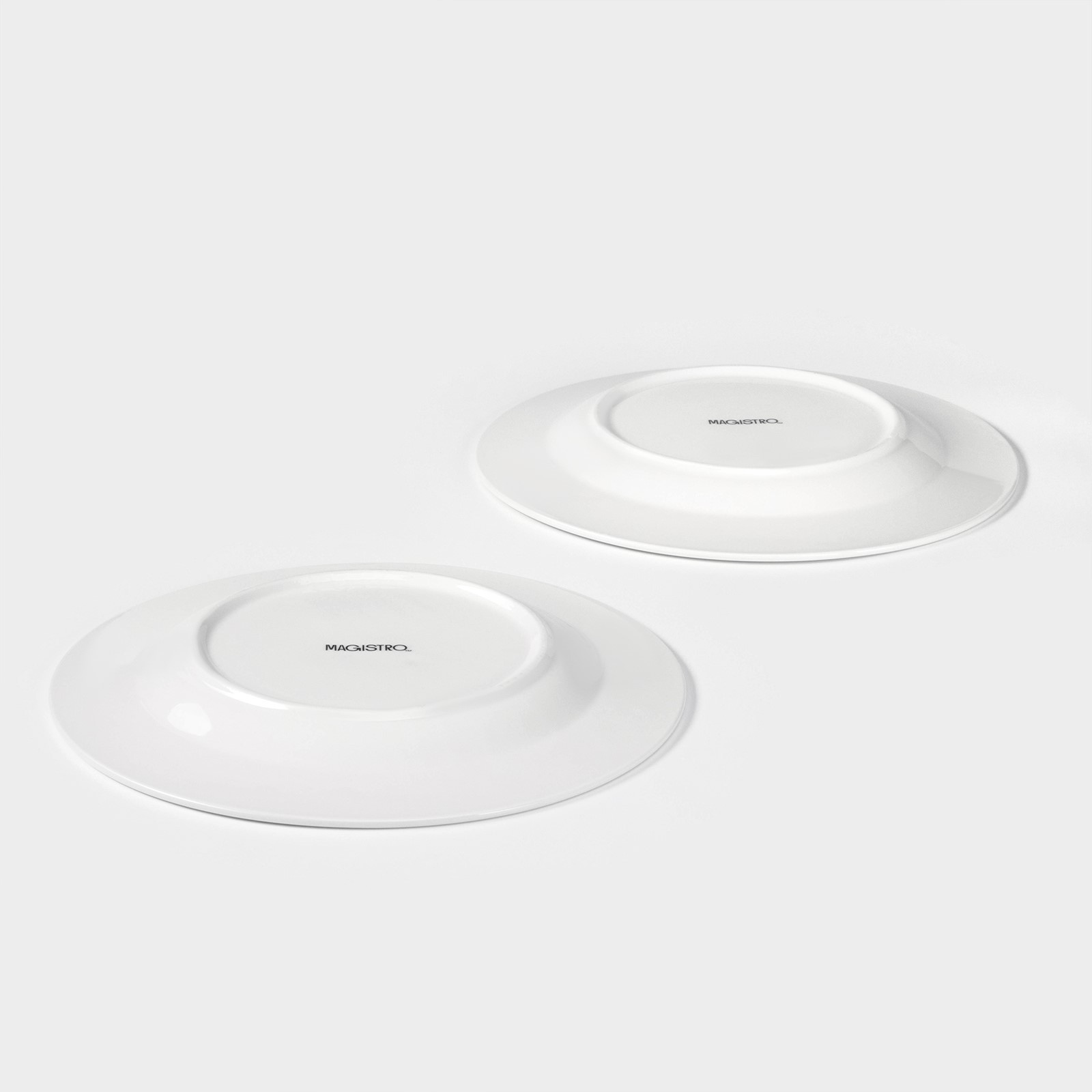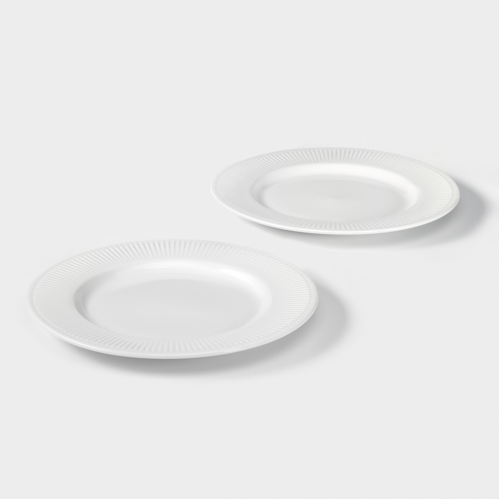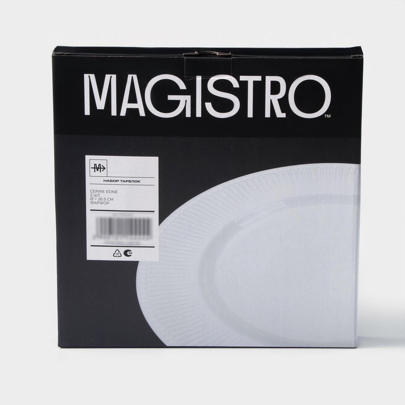 Набор фарфоровых тарелок magistro edne, 26,5x26,5x2,3 см, цвет белый. Стильная и современная посуда серии Magistro Edne-это именно то, что хотела бы видеть каждая на своей кухне! Данная коллекция изготовлена из высокопрочного, ударостойкого фарфора, который гарантирует долгий срок службы и сохранение первозданного вида посуды на протяжении всего периода использования. Эта серия подходит для использования не только по праздничным случаям, но и для повседневной сервировки стола. Посуда из утолщенного фарфора станет отличным выбором для тех, кто стремится к совершенству в каждой детали! Цвет: Белый Форма: Круглая Диаметр, см: 26.5 В наборе, шт.: 2 Материал: Фарфор Вид тарелки: Плоская Можно мыть в посудомоечной машине: Да Можно использовать в СВЧ-печи: Да Текстура: С рельефом Матовая поверхность: Нет Для горячего: Да Форма: Круг, шар, цилиндр  развернуть описание ▼
