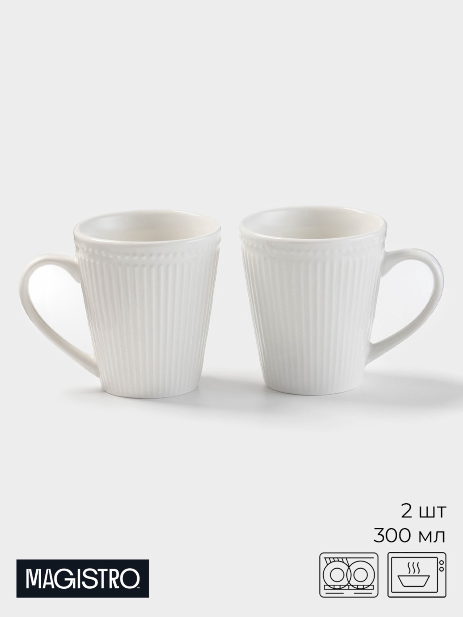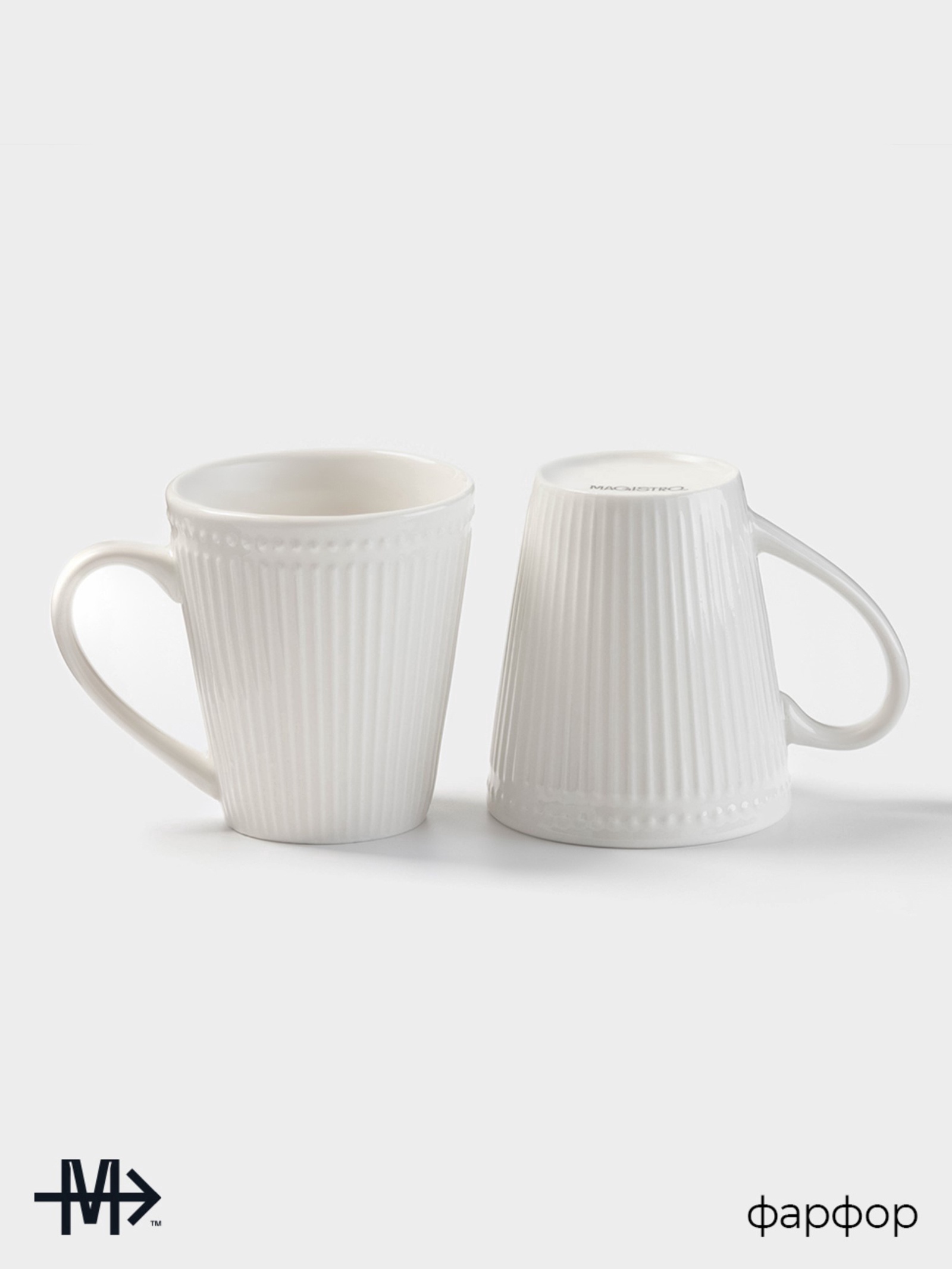 Набор кружек magistro edne, 300 мл, 2 шт., фарфор, белый. Этот набор кружек - идеальное решение для тех, кто ценит классический стиль и высокое качество. Преимущества набора кружек: Изысканная простота: Изготовленные из тончайшего фарфора, они отличаются безупречной белой отделкой и гладкой поверхностью.Созданы для комфорта: Их удобная форма и оптимальный объем прекрасно подходят для наслаждения любимым напитком.Практичность и универсальность: Кружки можно использовать как для горячих, так и для холодных напитков.Простота в уходе: Их можно мыть в посудомоечной машине и использовать в микроволновой печи.Набор кружек Magistro Edne - это стильный и практичный выбор для любого дома. Набор:Да|Цвет:Белый|Высота, см:5.5|В наборе, шт.:2|Объём, мл:300|Тематика:Однотонная|Рисунок:Нет|Материал:Фарфор|Дополнительный аксессуар:Без аксессуаров|Индивидуальная упаковка:Да|Можно мыть в посудомоечной машине:Да|Можно использовать в СВЧ-печи:Да|Текстура:С рельефом|Особенности:Без особенностей|Матовая поверхность:Нет|Страна:Китай  развернуть описание ▼