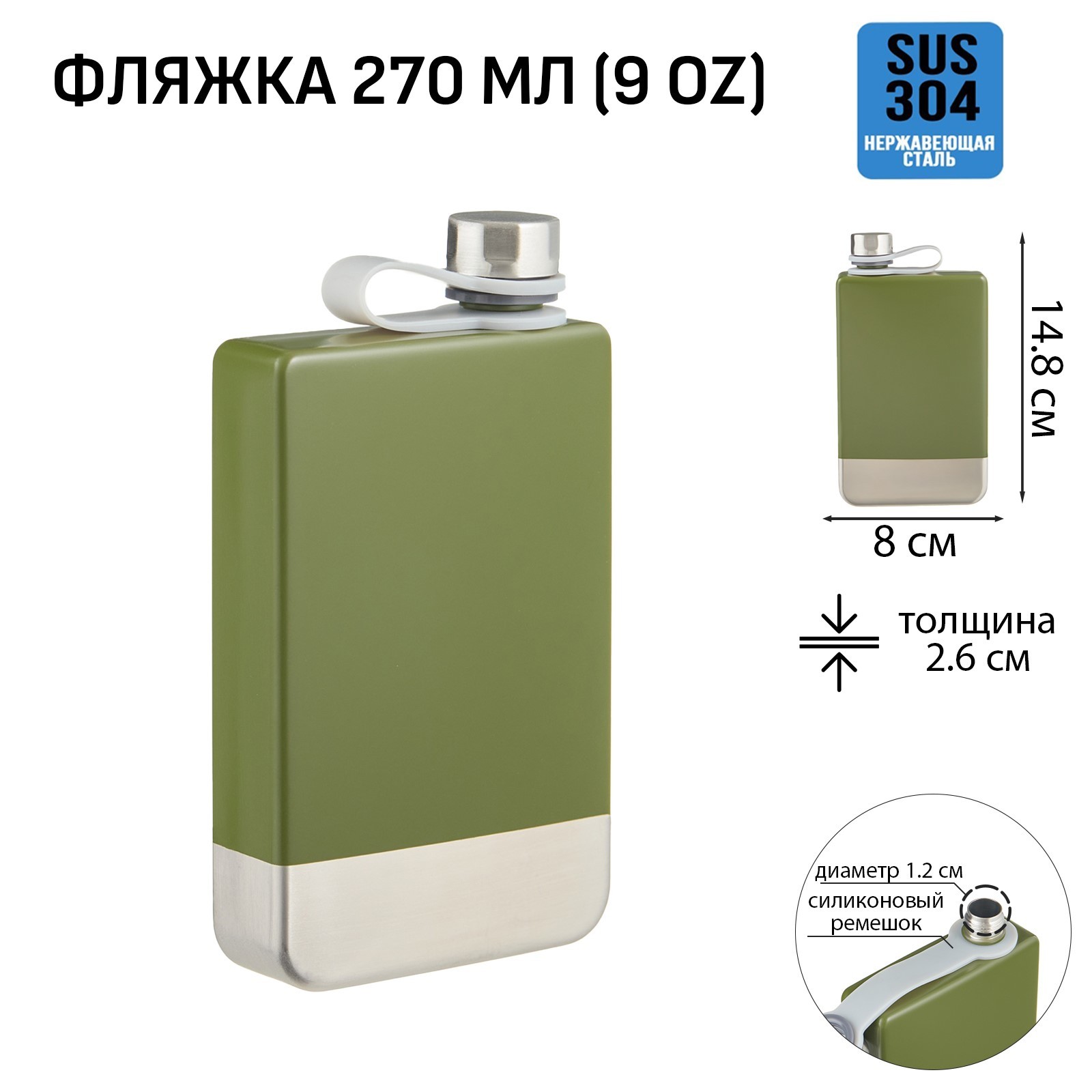 Фляжка для алкоголя, нержавеющая сталь, подарочная, армейская, 270 мл, 9 Oz