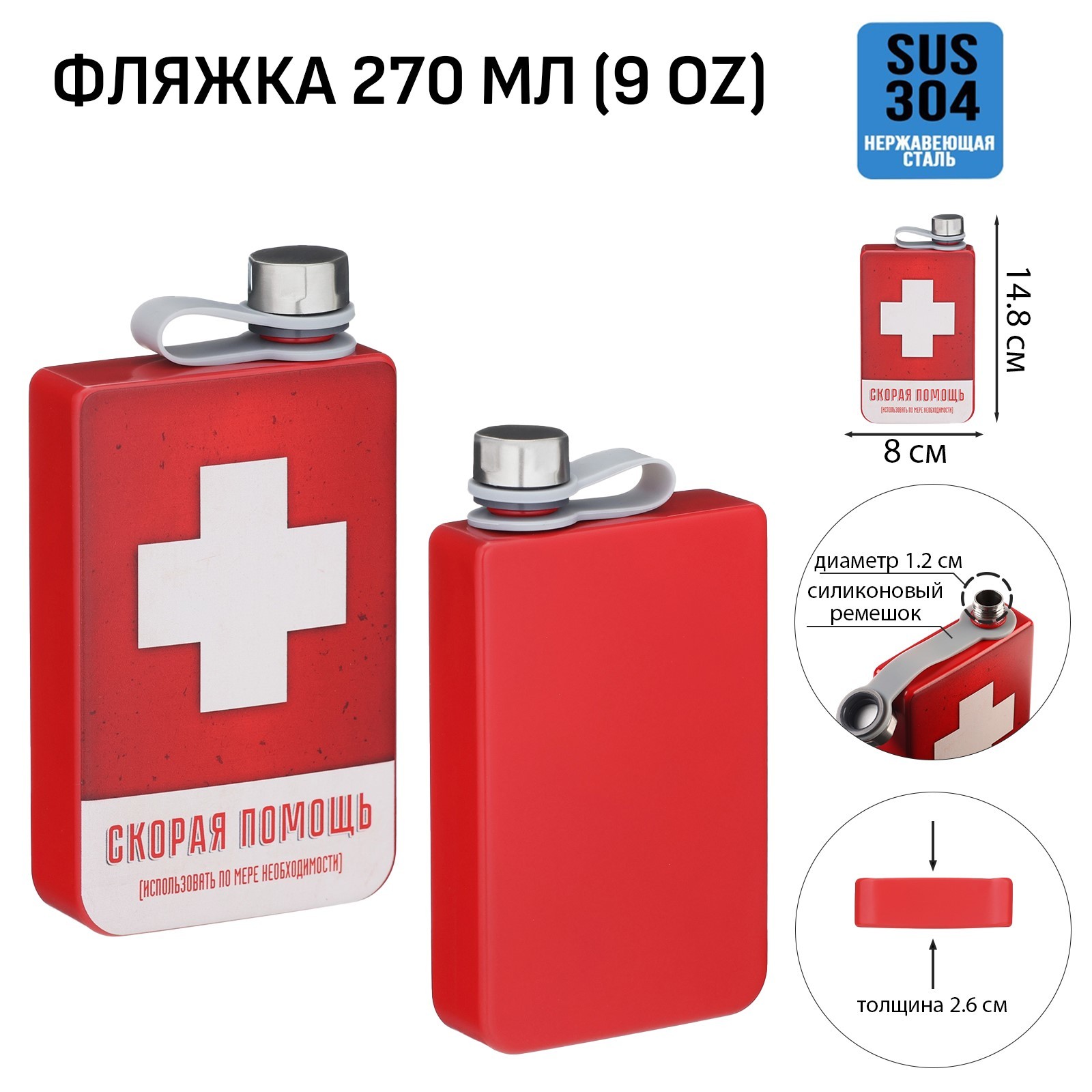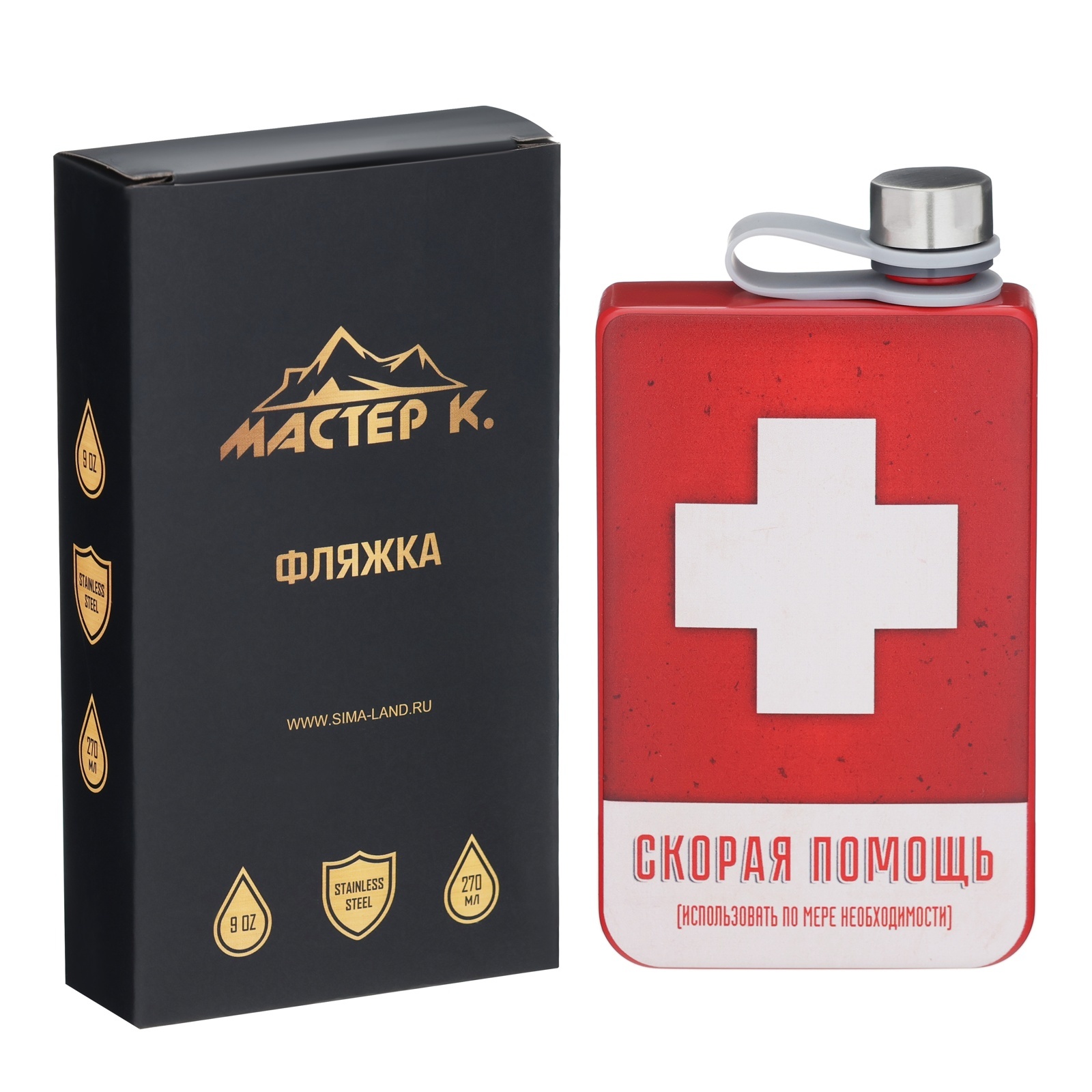 Фляжка для алкоголя "скорая помощь", нержавеющая сталь, подарочная, 270 мл, 9 Oz
