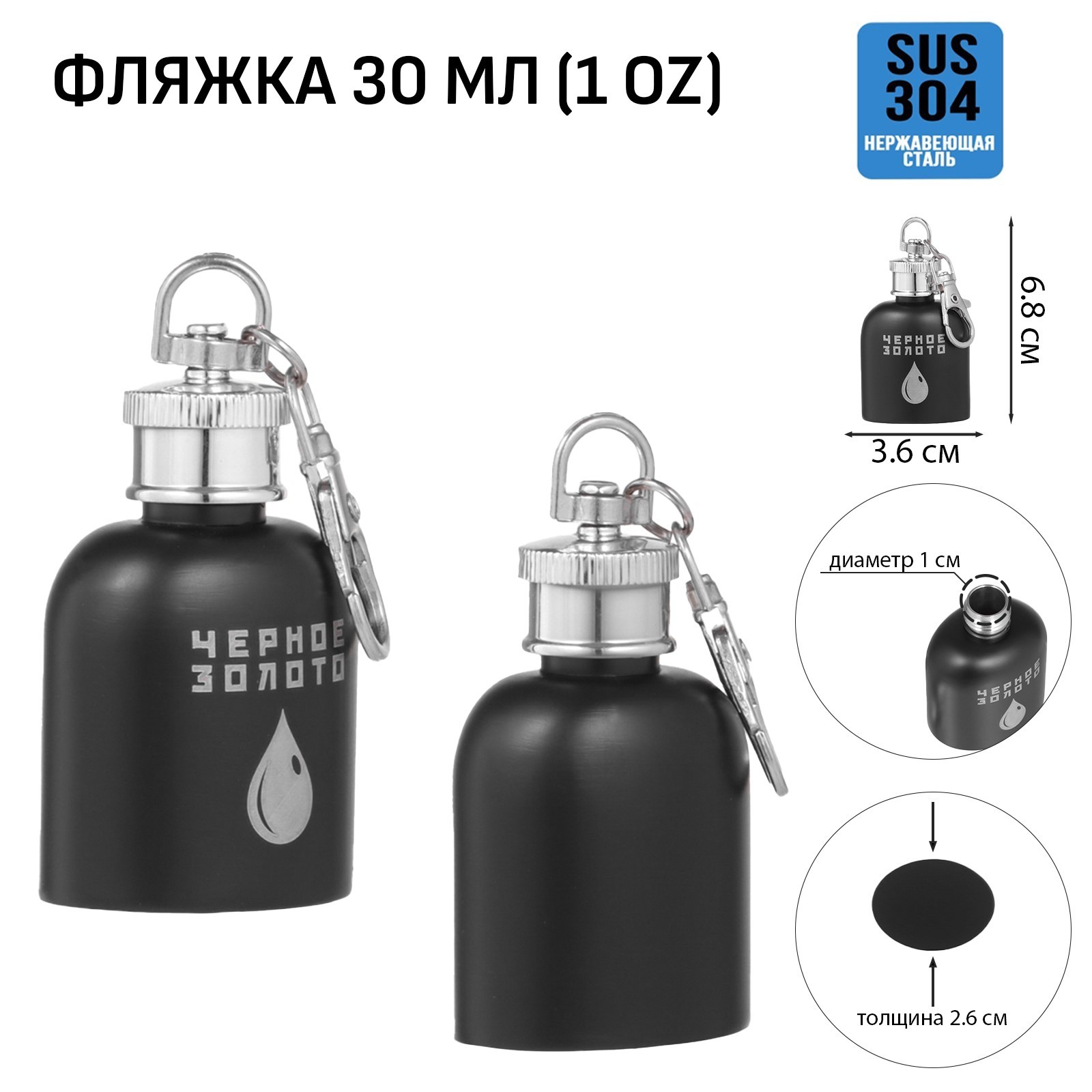 Фляжка-брелок для алкоголя "черное золото", нержавеющая сталь, 30 мл, 1 Oz
