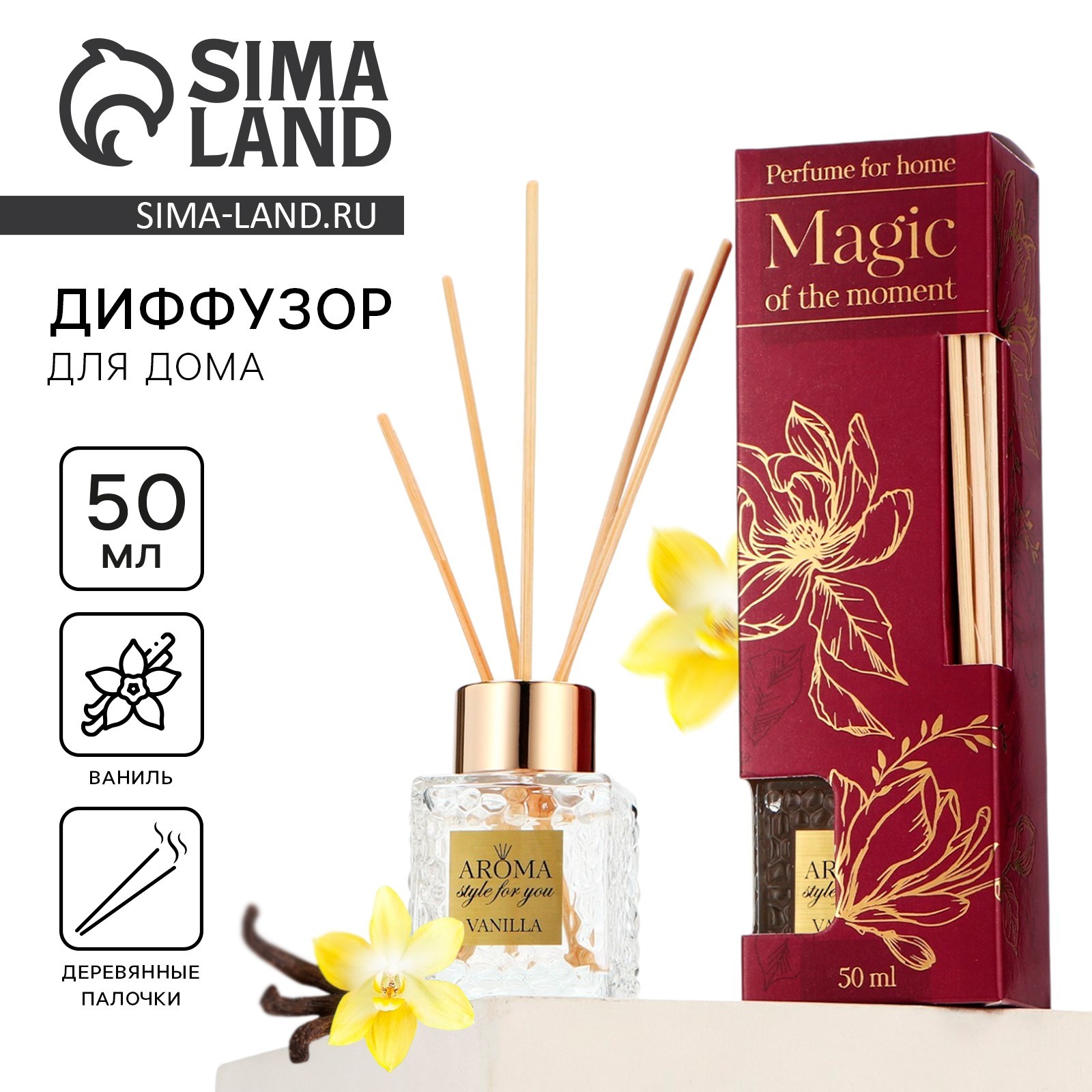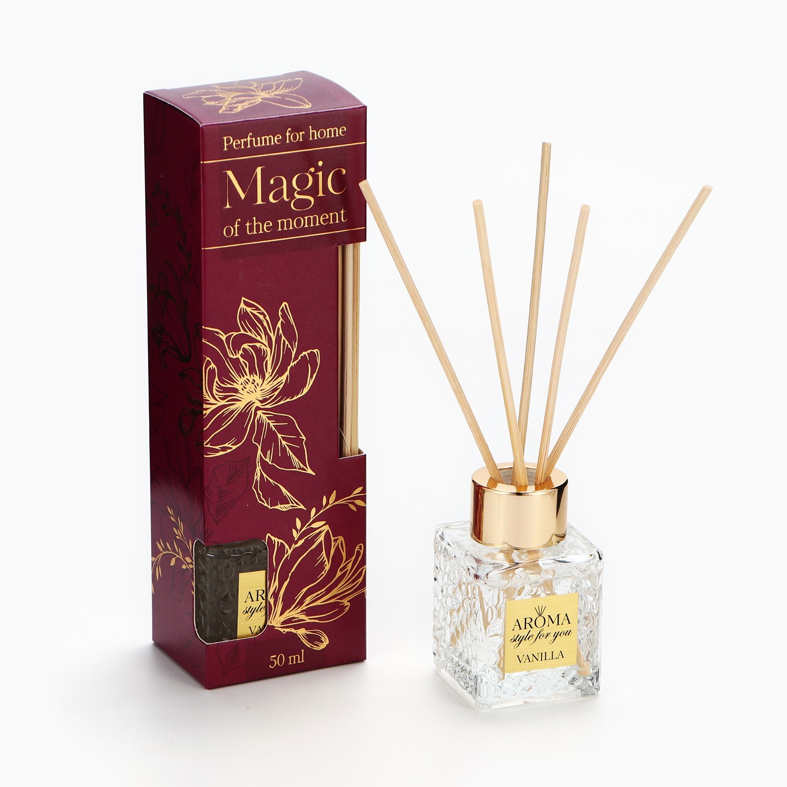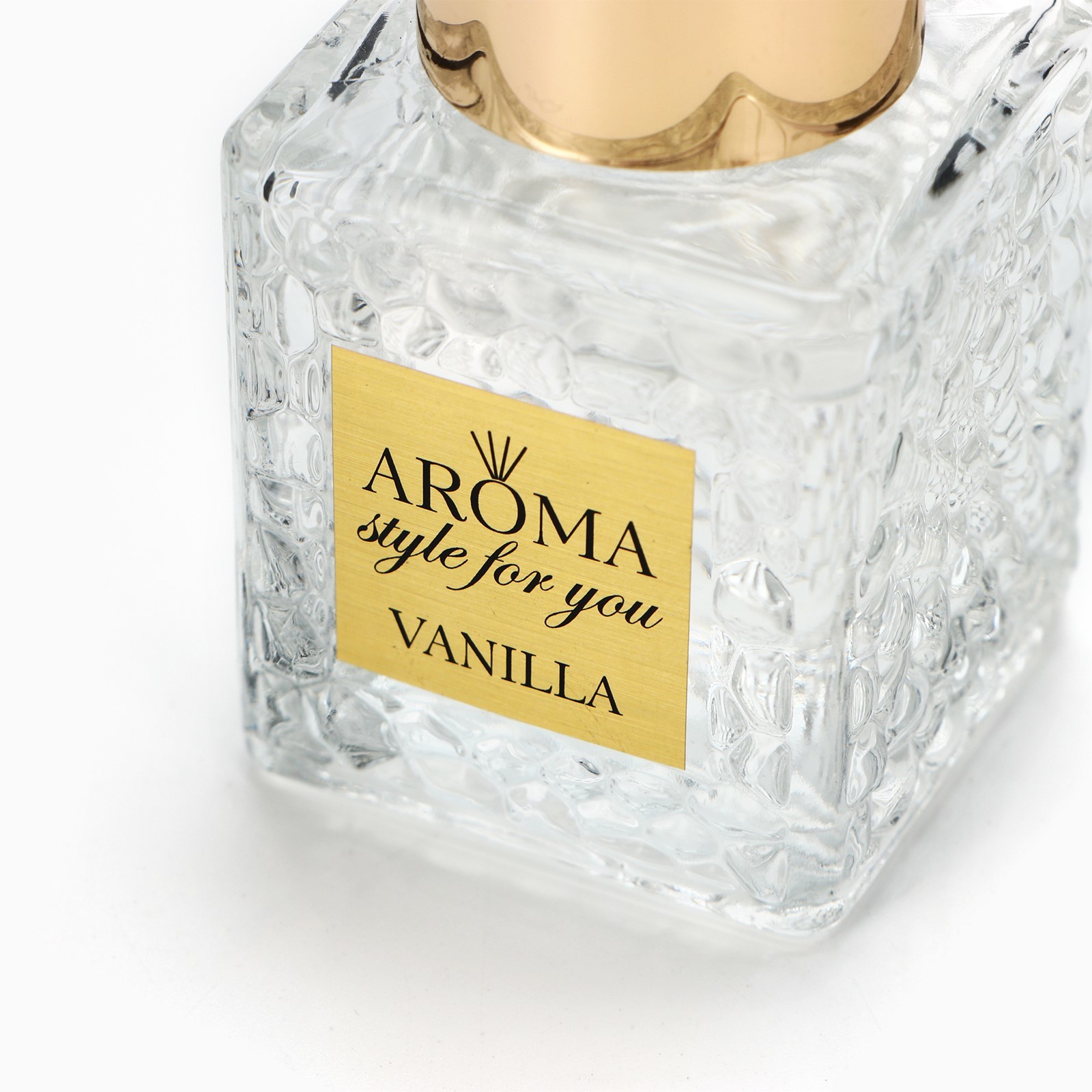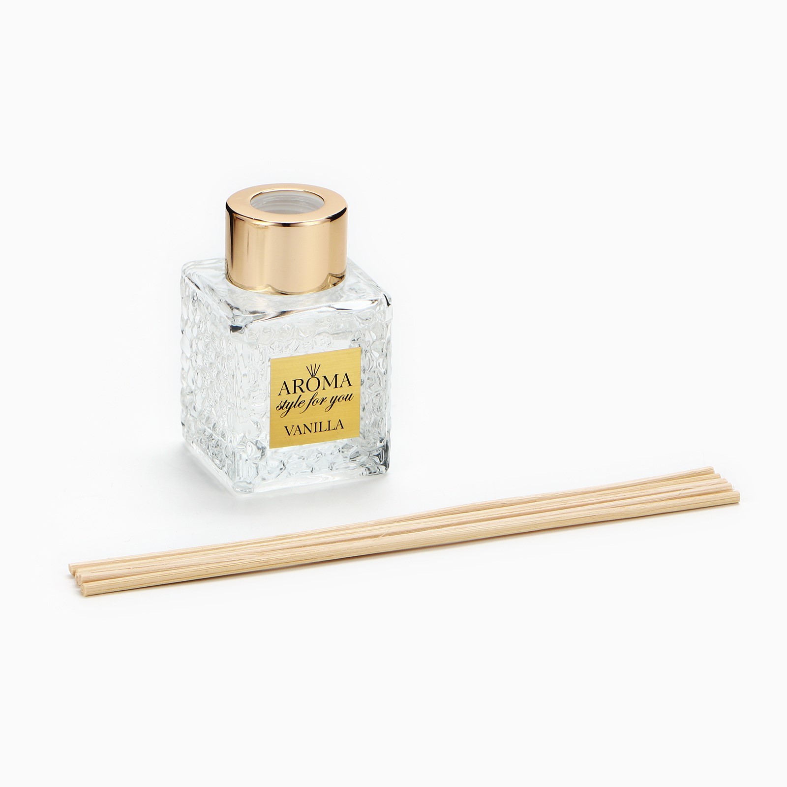 Диффузор ароматический «for home»,аромат ваниль, 50 мл.. Ароматический диффузор «For home» от SEE YOU HOME станет настоящим украшением вашего дома! Он наполнит его обволакивающим ванильным ароматом, создавая уютную и приятную атмосферу. Диффузор выполнен в стильной стеклянной бутылочке с золотистой крышкой, а в комплект входят палочки из натурального дерева. Просто вставьте палочки в бутылочку и наслаждайтесь тонким ароматом. Объем диффузора - 50 мл, что позволит вам наслаждаться ароматом в течение долгого времени. Сделайте ваш дом по-настоящему уютным с ароматическим диффузором «For home» от SEE YOU HOME! ПрименениеИзвлеките диффузор из упаковки, откройте крышку и защитный колпачок, опустите палочки в ароматизированную жидкость и наслаждайтесь. Ароматизированная жидкость пропитывает палочки, и с их помощью аромат распространяется по всему помещению. Объём, мл: 50 Вид ароматизатора: В бутылочке Аромат: Ваниль  развернуть описание ▼