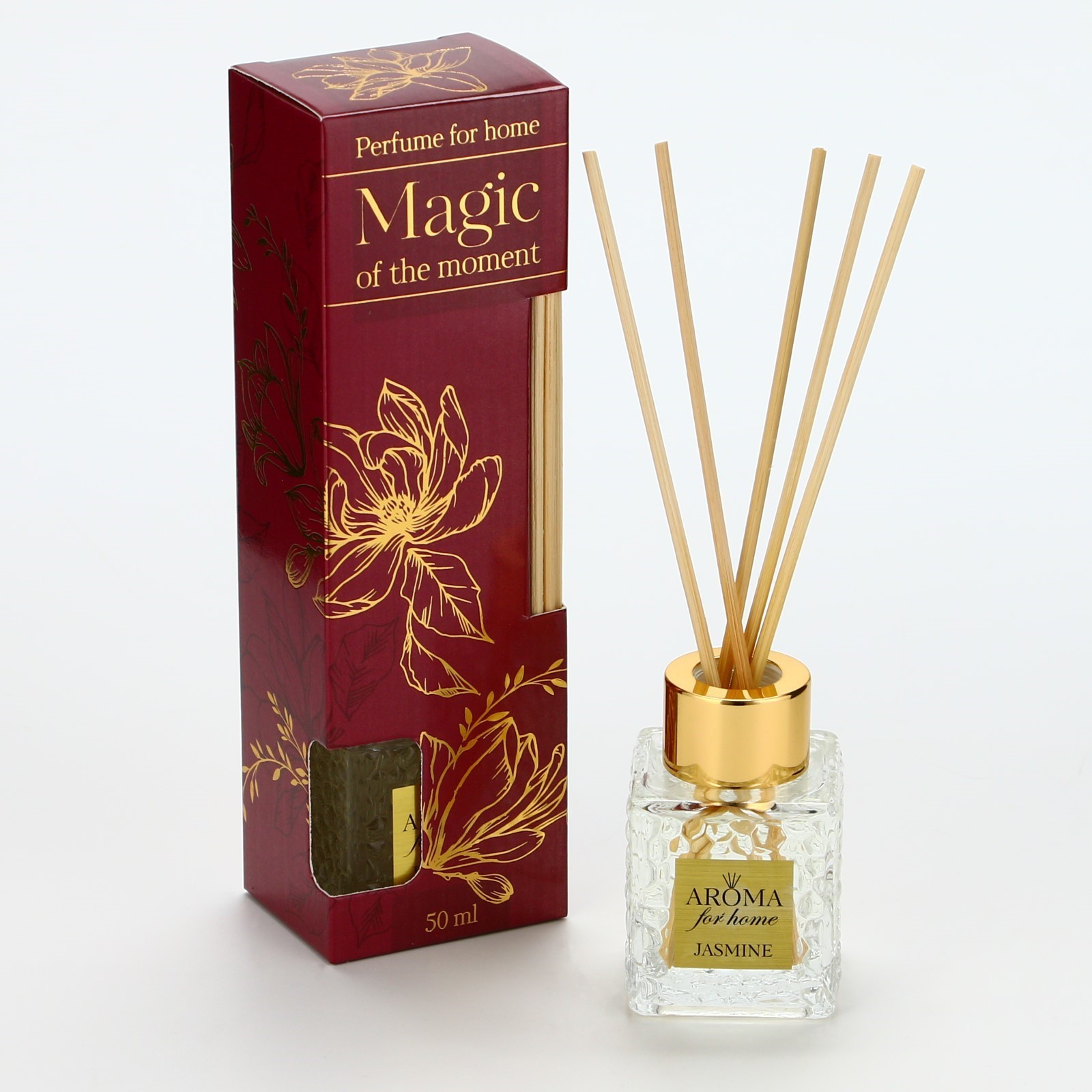 Диффузор ароматический «for home»,аромат жасмин, 50 мл.. Ароматический диффузор «For home» от SEE YOU HOME станет настоящим украшением вашего дома! Он наполнит его свежим цветочным ароматом жасмина, создавая уютную и приятную атмосферу. Диффузор выполнен в стильной стеклянной бутылочке с золотистой крышкой, а в комплект входят палочки из натурального дерева. Просто вставьте палочки в бутылочку и наслаждайтесь тонким ароматом. Объем диффузора - 50 мл, что позволит вам наслаждаться ароматом в течение долгого времени. Сделайте ваш дом по-настоящему уютным с ароматическим диффузором «For home» от SEE YOU HOME! ПрименениеИзвлеките диффузор из упаковки, откройте крышку и защитный колпачок, опустите палочки в ароматизированную жидкость и наслаждайтесь. Ароматизированная жидкость пропитывает палочки, и с их помощью аромат распространяется по всему помещению. Объём, мл: 50 Вид ароматизатора: В бутылочке Аромат: Жасмин  развернуть описание ▼