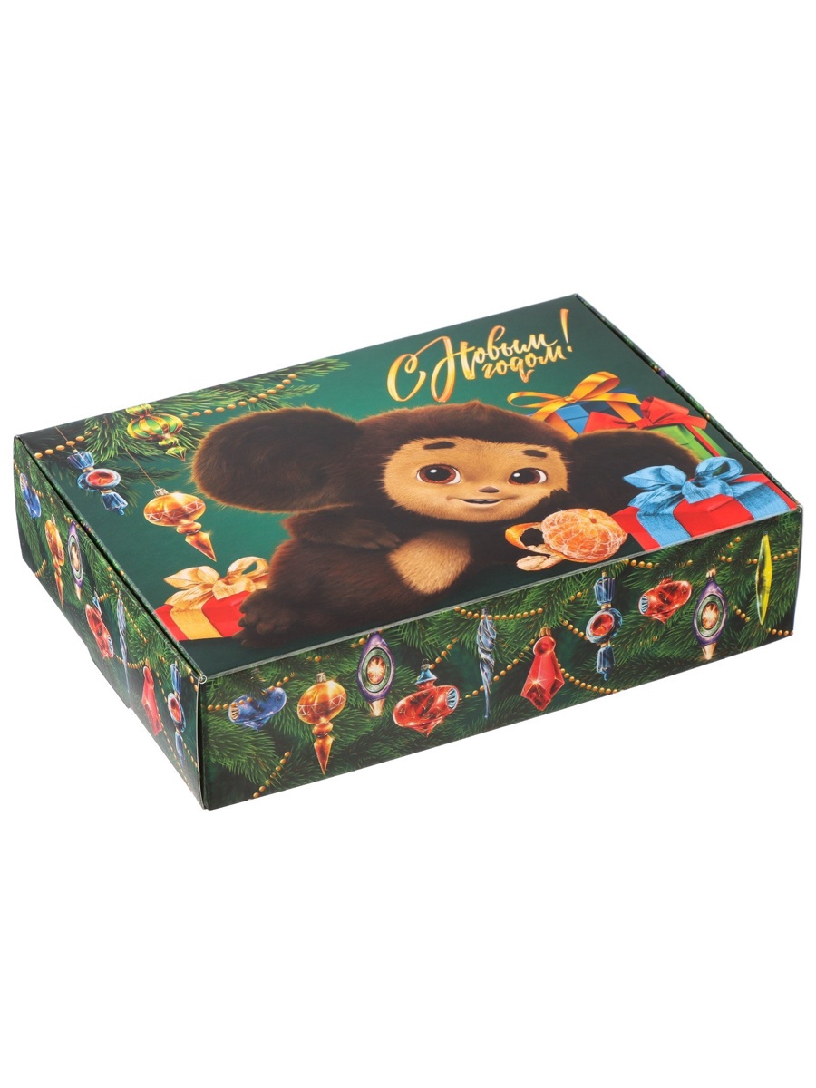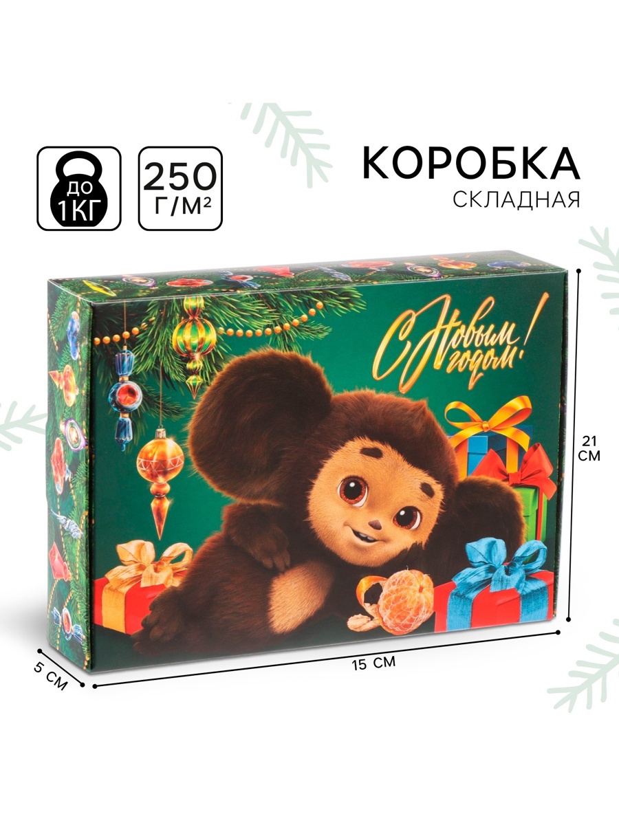Коробка подарочная «с новым годом!», чебурашка, 21 х 15 х 5 см. Цвет:Зелёный|Для кого:Для девочки|Для кого:Для мальчика|Форма:Прямоугольная|Плотность, г/м :250|Длина, см:21|Ширина, см:15|Высота, см:5|Допустимый вес вложения, г:1000|Тематика:Новогодняя|Тематика:Детская|Тематика:Мультфильмы|Символ года:Нет|Тематика праздника:Новый год|Материал:Картон|Вид:Складные коробки|Размер:Средний (18-24 см)|Окошко:Нет|Крышка-дно:Нет|Страна:Россия  развернуть описание ▼