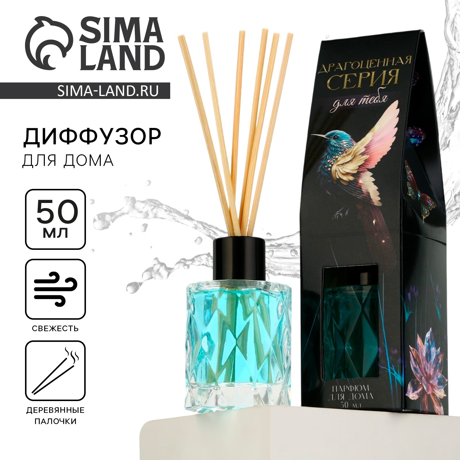 Диффузор ароматический, аромат свежесть, 50 мл.. Ароматический диффузор SEE YOU HOME «Драгоценная серия» с ароматом свежести - это стильное и практичное решение для создания приятной атмосферы в вашем доме. Диффузор выполнен в красивой стеклянной бутылочке с изысканным дизайном. В комплекте - деревянные палочки, которые нужно вставить в бутылочку с ароматом. Палочки впитывают аромат и постепенно распространяют его по помещению. Диффузор «Драгоценная серия» создает в вашем доме приятную, легкую атмосферу, наполненную свежим ароматом, который будет радовать вас и ваших гостей. В комплекте 50 мл ароматизированной жидкости, которой хватит надолго. Диффузор поставляется в стильной подарочной коробке, что делает его прекрасным подарком для себя или любимого человека. ПрименениеИзвлеките диффузор из упаковки, откройте крышку и защитный колпачок, опустите палочки в ароматизированную жидкость и наслаждайтесь. Ароматизированная жидкость пропитывает палочки, и с их помощью аромат распространяется по всему помещению. Объём, мл: 50 Вид ароматизатора: В бутылочке Аромат: Свежесть  развернуть описание ▼