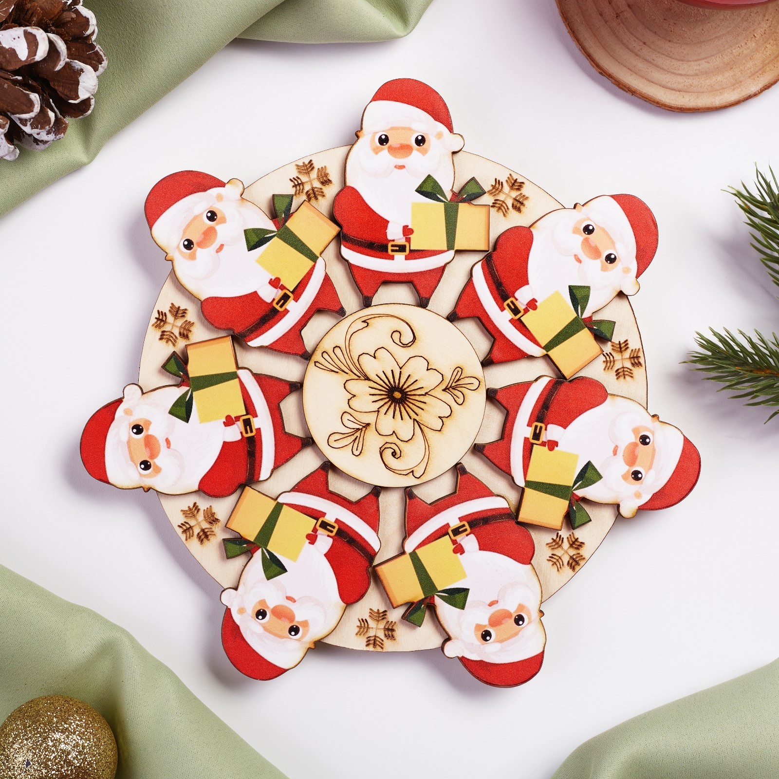 Подставка под горячее "дед мороз", 20х20 см, микс дерева