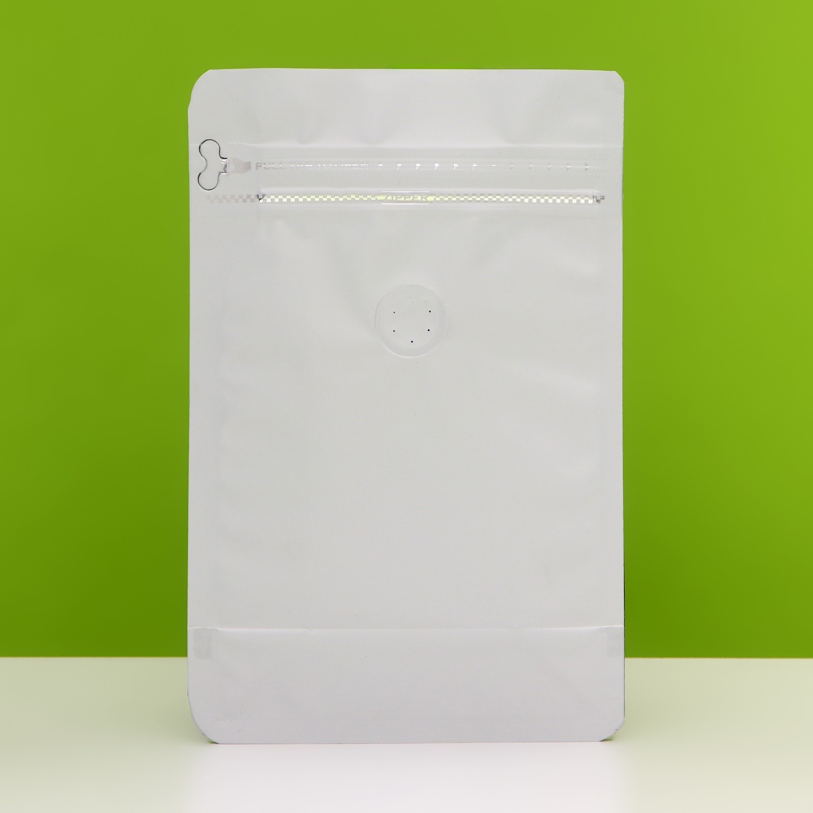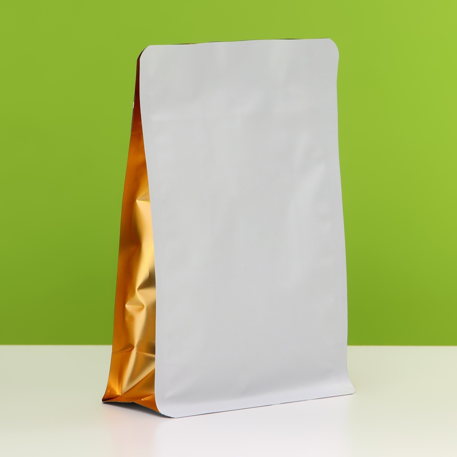 Пакет восьмишовный под кофе, с клапаном ,плоское дно, белый-золотой,20 х 13 х 7см