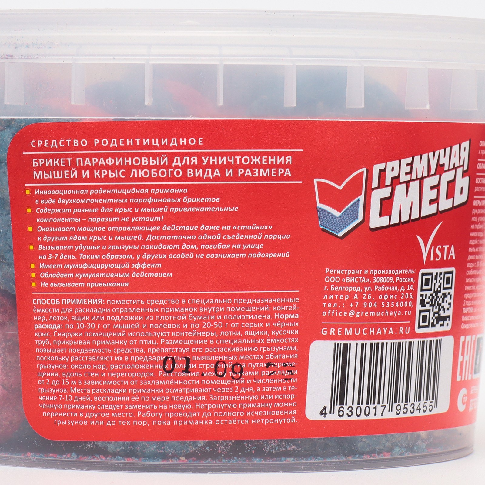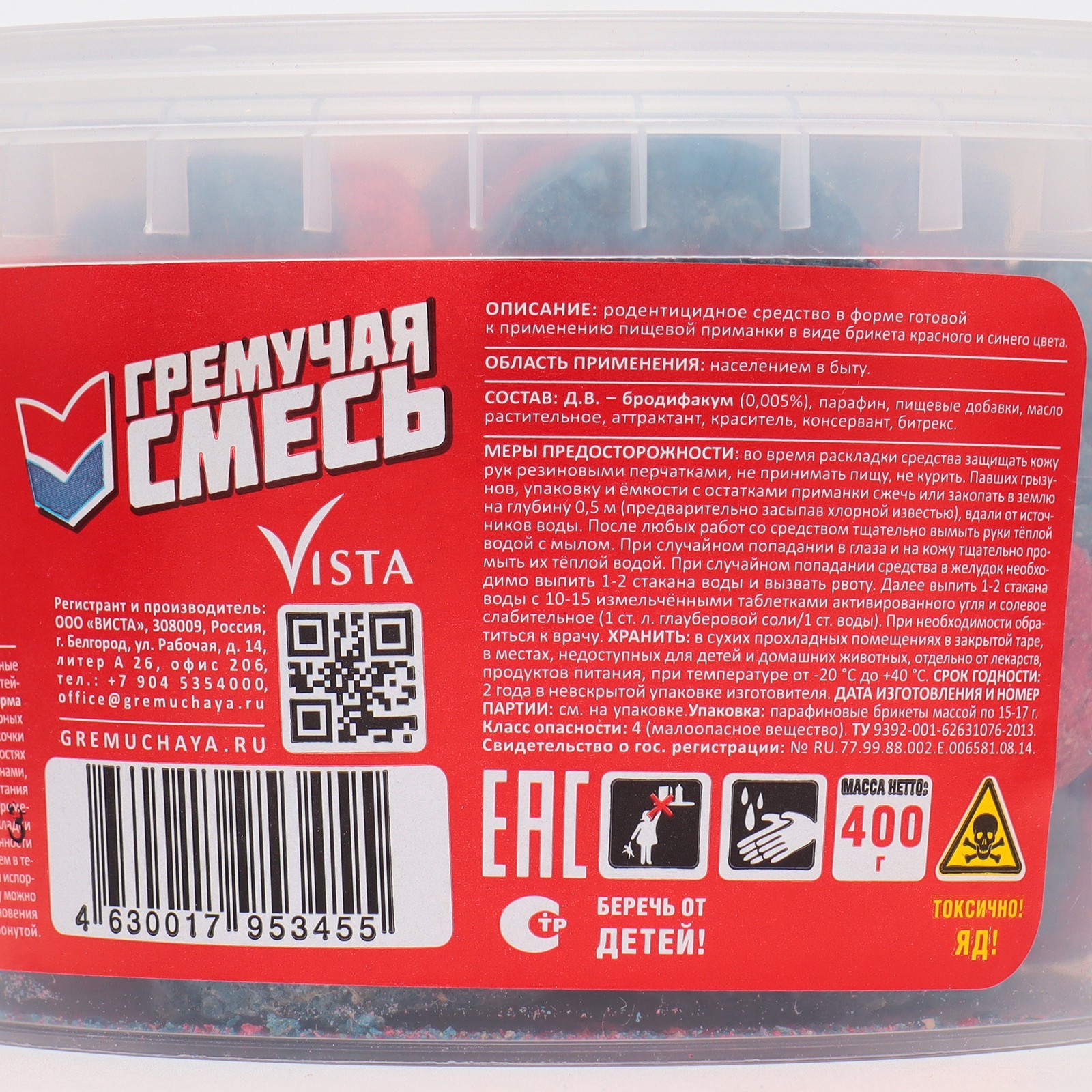 Тесто-брикеты от грызунов "гремучая смесь", парафиновый брикет, 400 г