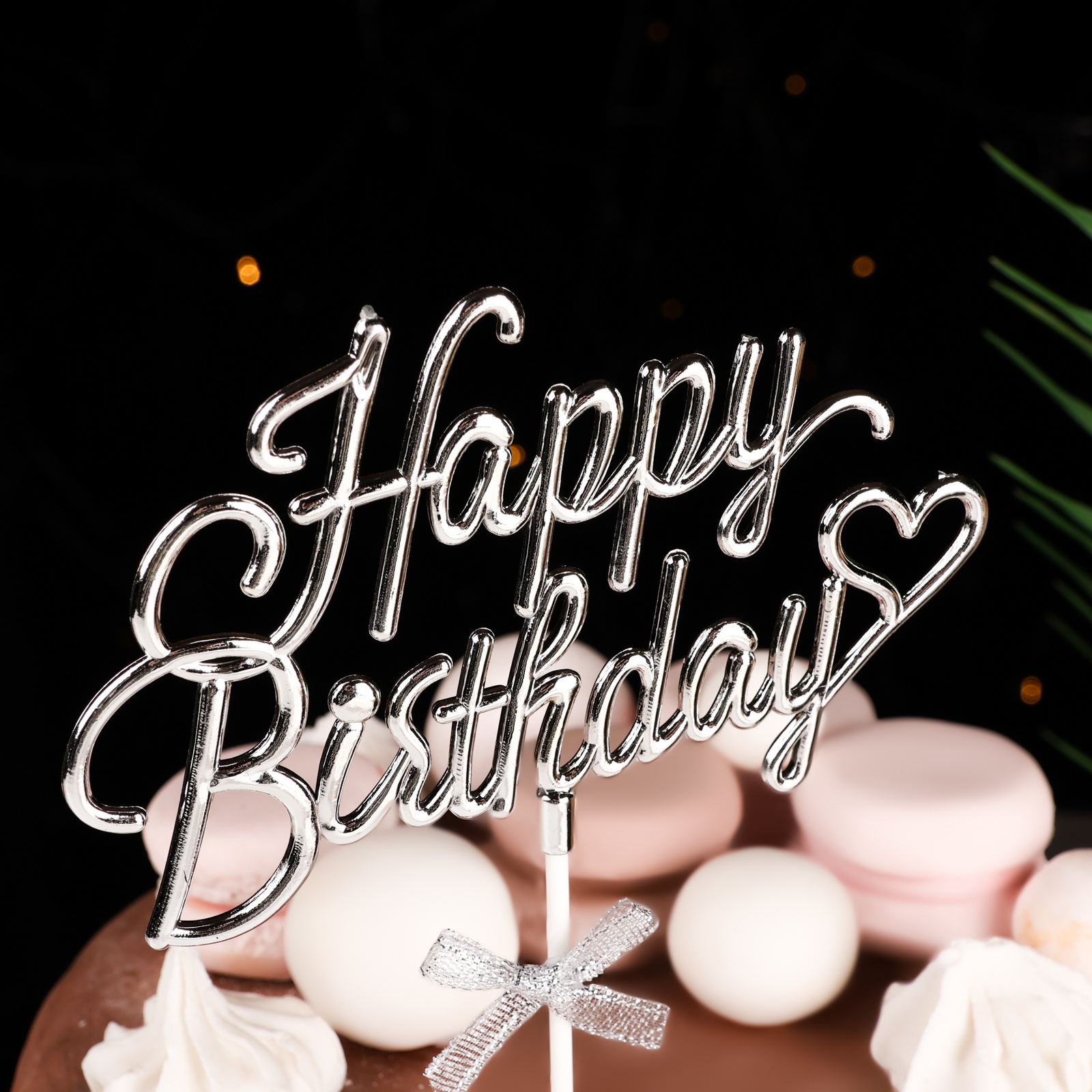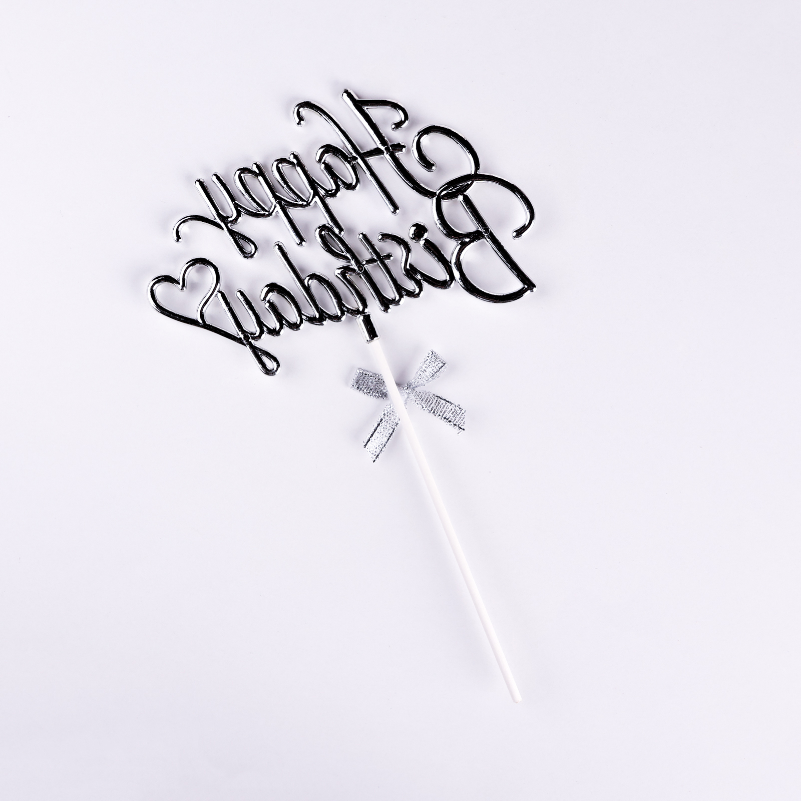 Топпер "Happy Birthday", серебряный, с бантиком, дарим красиво