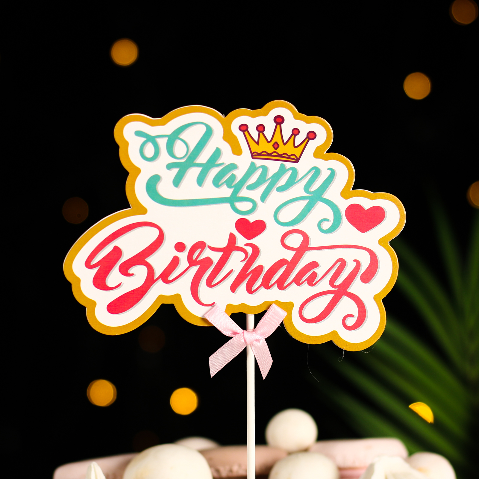 Топпер "Happy Birthday.корона", розовый с голубым, с бантиком, дарим красиво