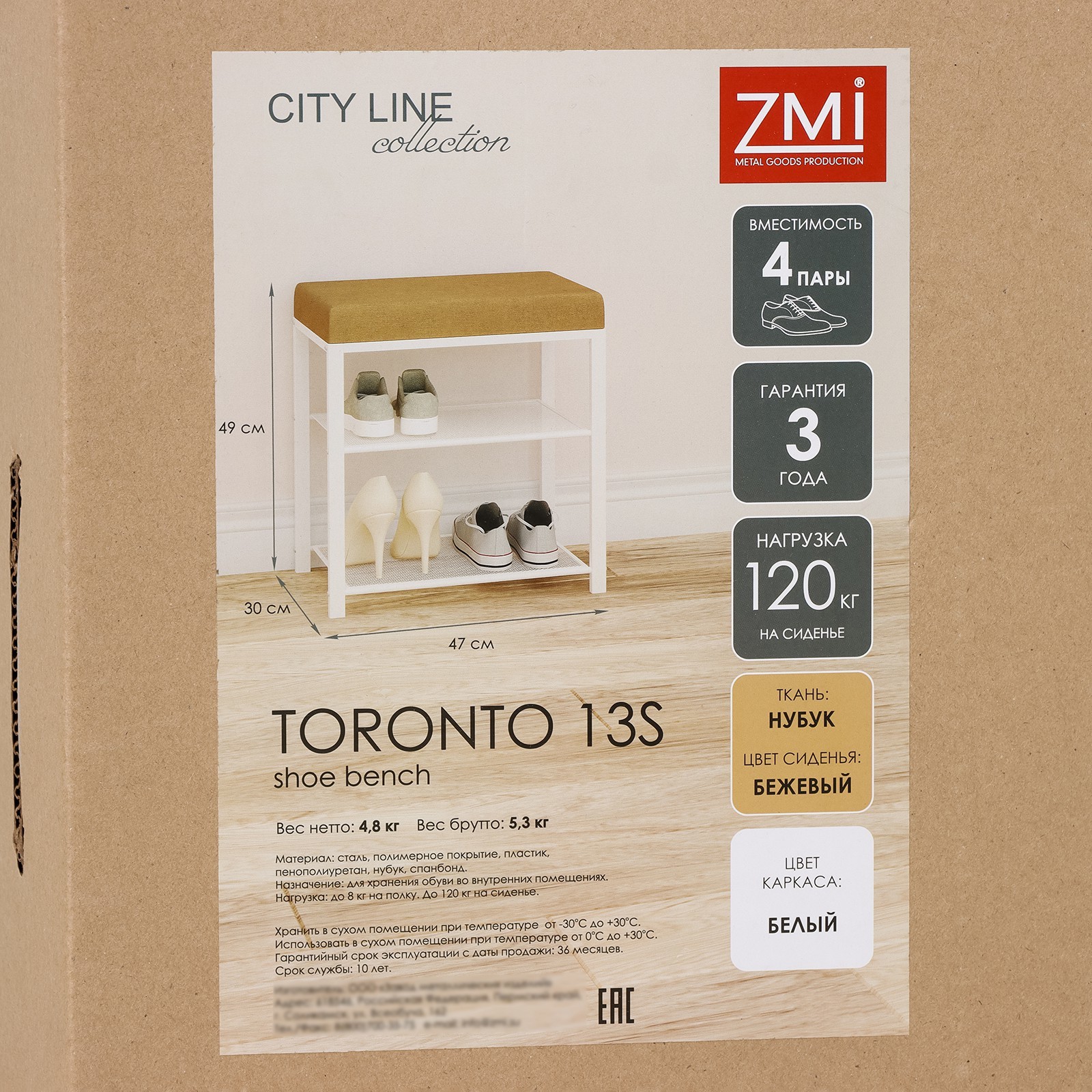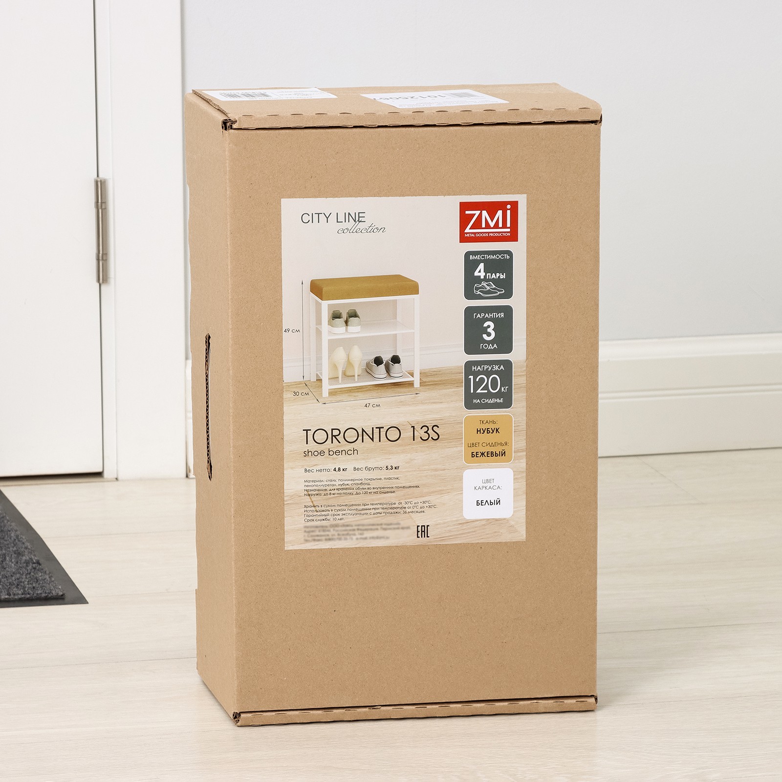 Банкетка «торонто 13s», 47x30x49 см, цвет каркаса белый, цвет сиденья бежевый