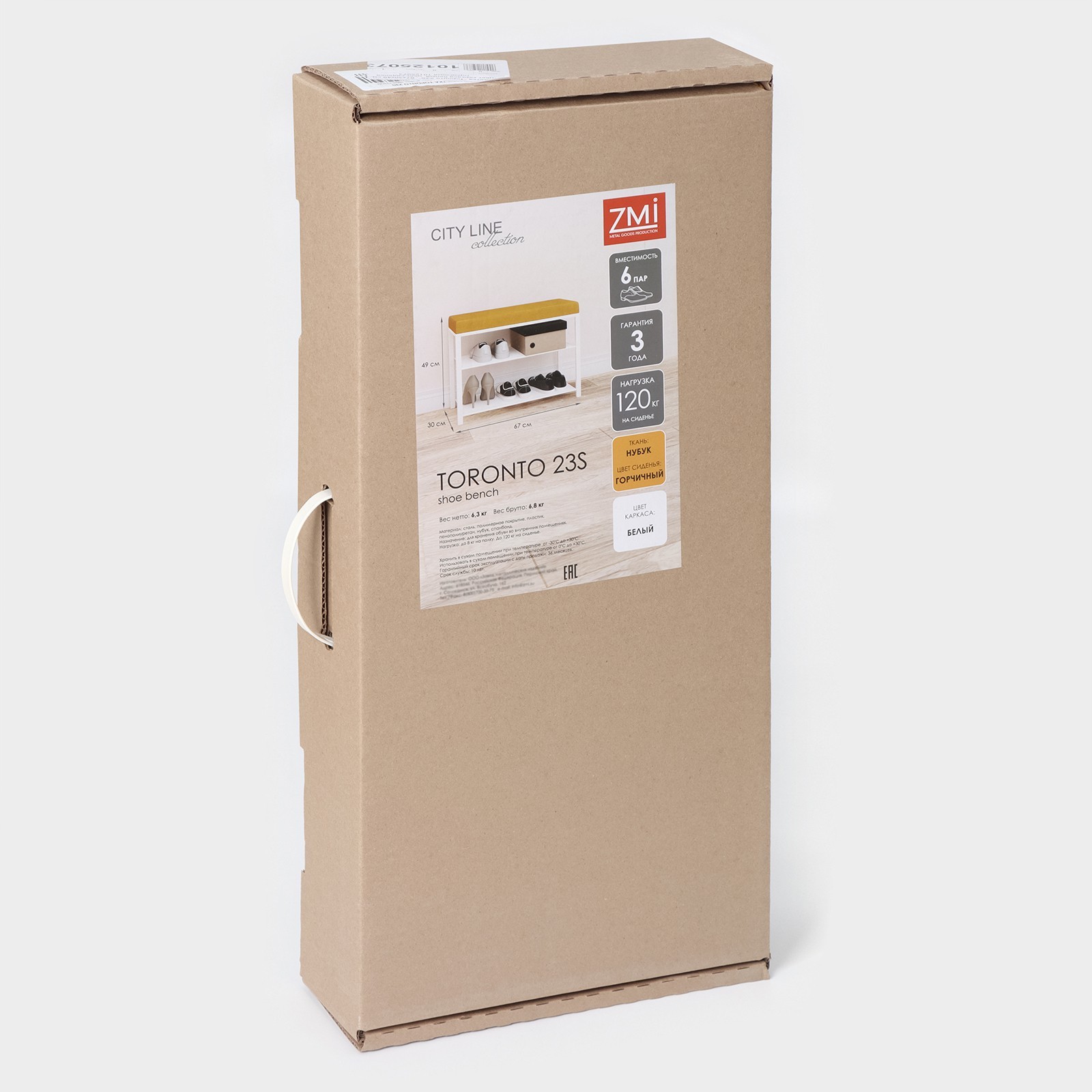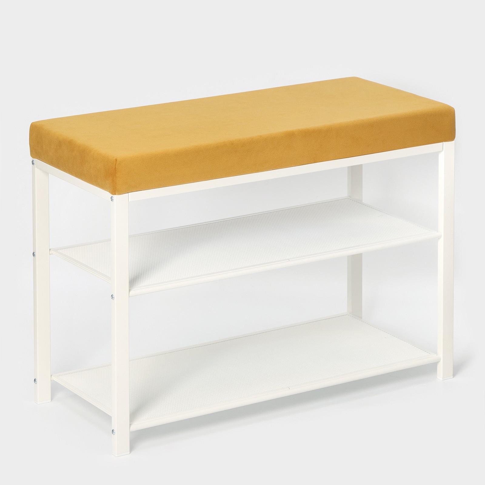 Банкетка «торонто 23s», 67x30x49 см, цвет каркаса белый, цвет сиденья горчичный