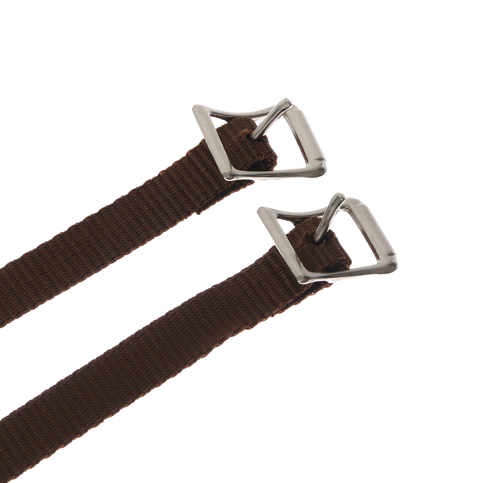 Тренчики для шпор из нейлона, 500 мм, коричневый, набор 2 шт. Тренчики для шпор из нейлона — это стильные и функциональные аксессуары, которые станут незаменимыми помощниками для любителей верховой езды. Они изготовлены из прочного и долговечного материала, обеспечивая надёжность и долговечность использования. Тренчики имеют универсальный коричневый цвет, который гармонично сочетается с любым образом наездника. Длина тренчиков составляет 500 мм, что позволяет надёжно закрепить шпоры на ботинках или сапогах. В наборе идут два тренчика, что делает их удобными и практичными в использовании.