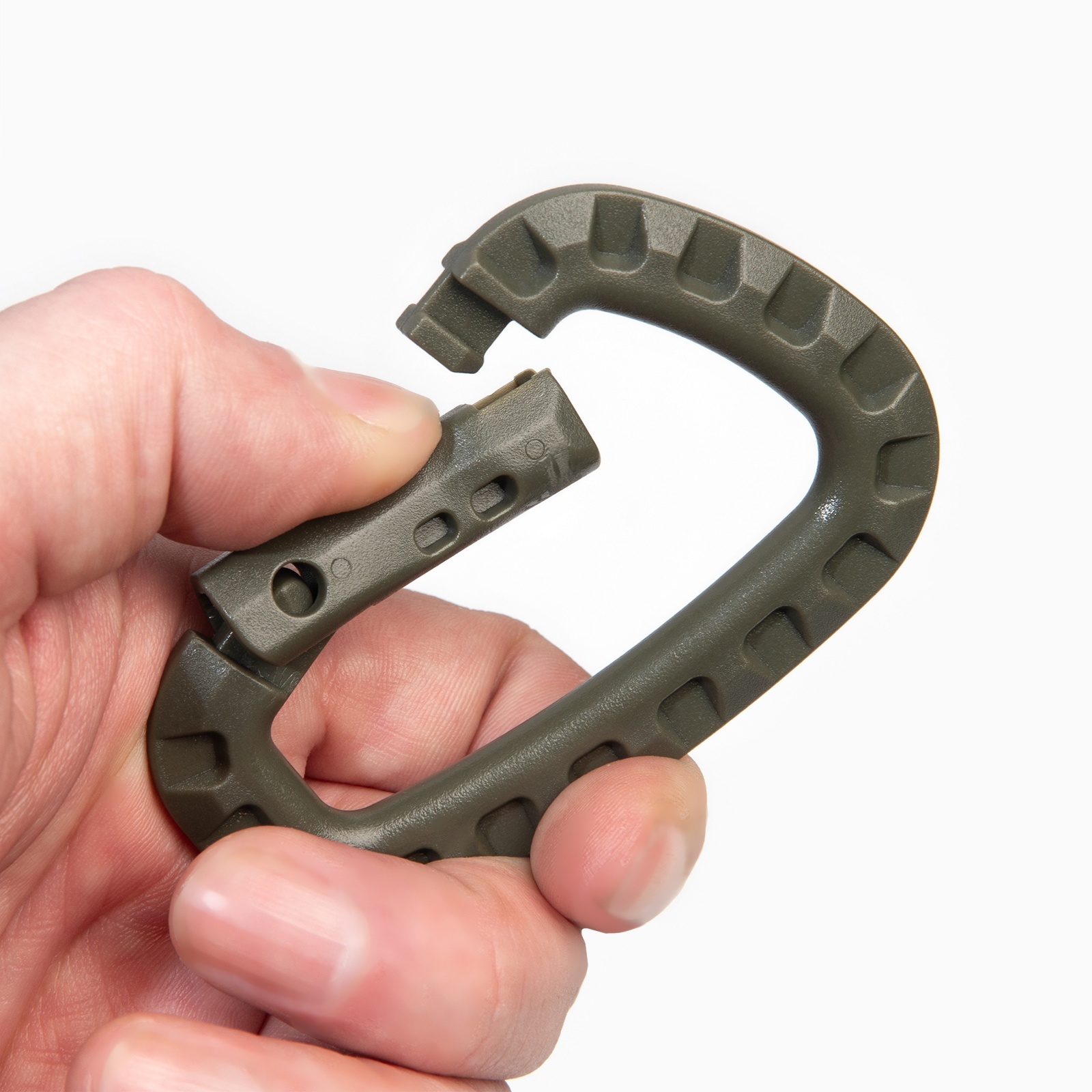 Карабин тактический, абс-пластик, 8.5 см, грузоподъемность - 80 кг. Карабин - универсальное устройство для крепления и фиксации снаряжения. Изделие может использования во время активного отдыха (поход, охота, рыбалка) в качестве подвеса или для быстрой замены сломавшегося фастекса на рюкзаке. Цвет: Зелёный Длина, мм: 85 Материал: Пластик Вид карабина: С защелкой Вид: Карабин  развернуть описание ▼