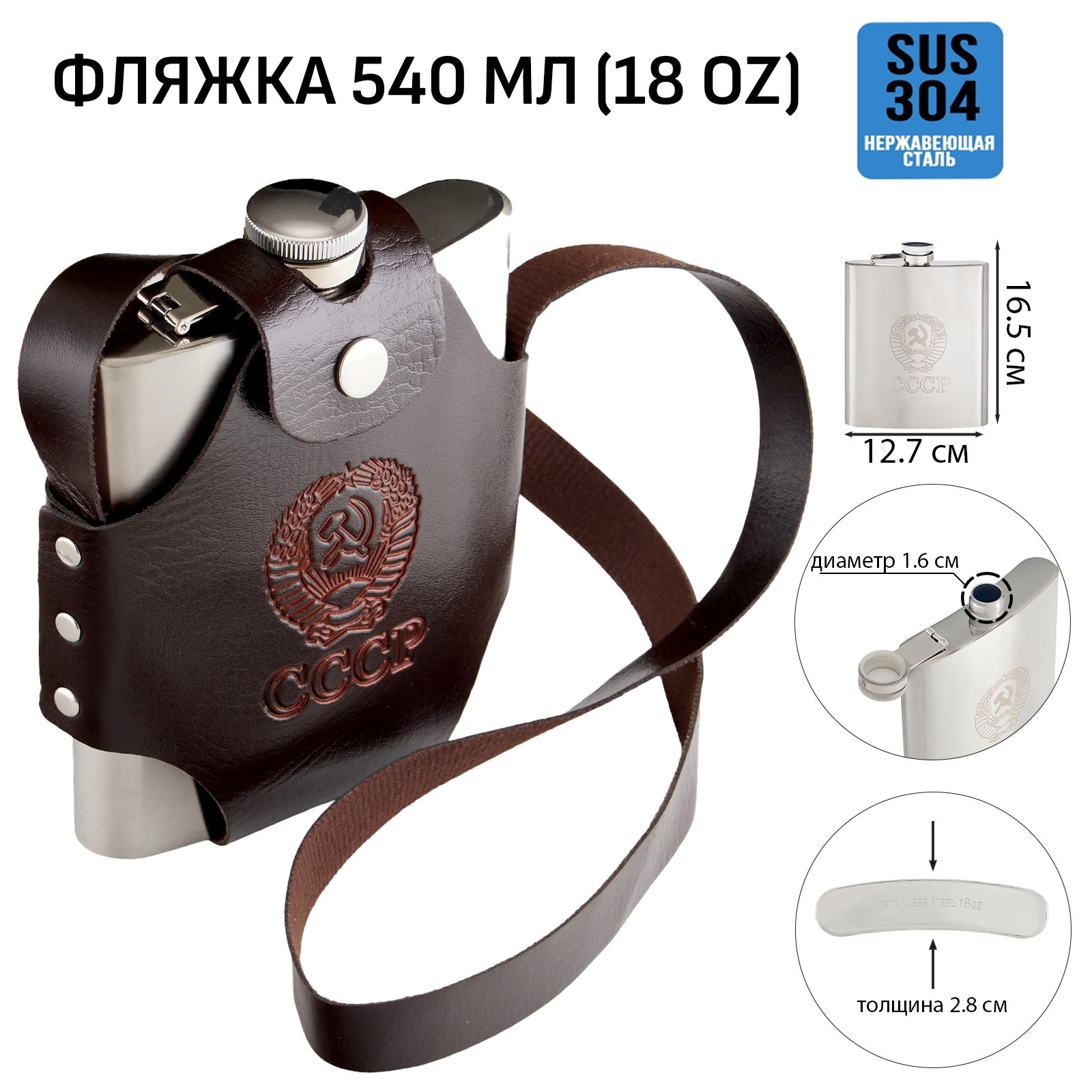 Фляжка для алкоголя "ссср", нержавеющая сталь, чехол, подарочная, 540 мл