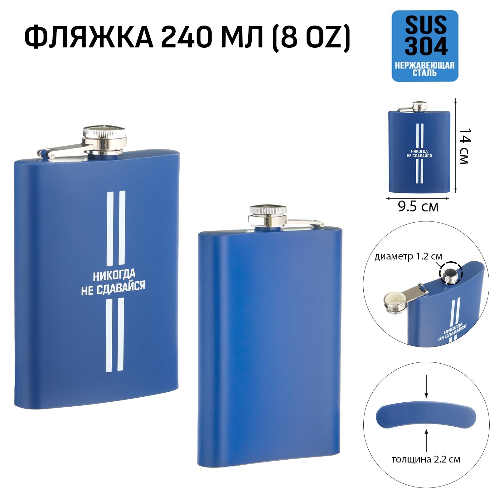 Фляжка для алкоголя "никогда не сдавайся", нержавеющая сталь, 240 мл, 8 Oz