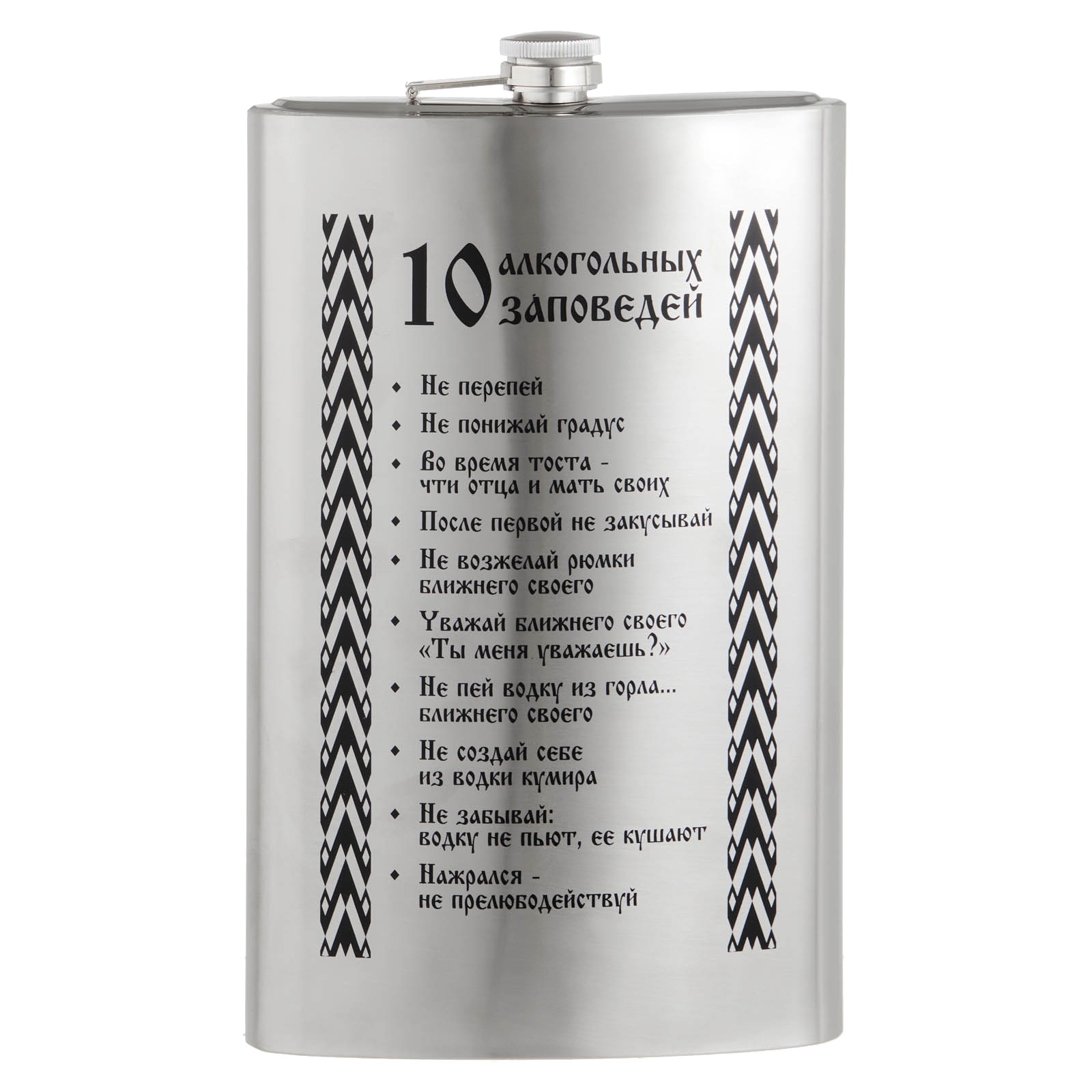 Фляжка для алкоголя и воды, 1.92 л, "заповеди", нержавеющая сталь, подарочная, 64 Oz