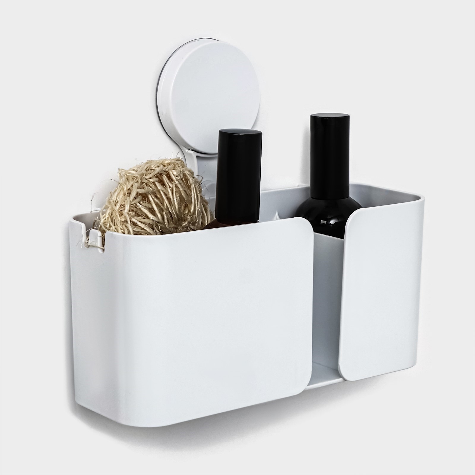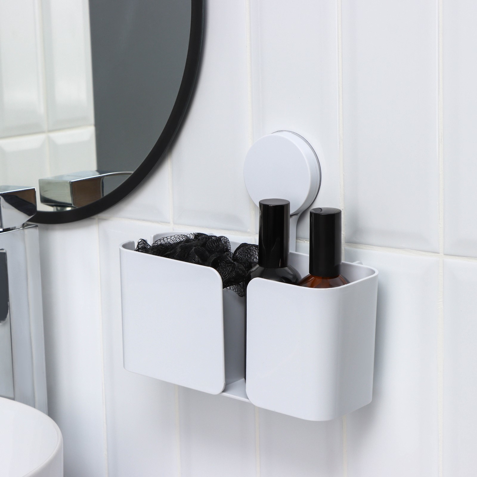 Держатель для ванных принадлежностей на липучке доляна, 21x19x9 см, цвет белый. Держатель - это удобное и практичное решение для организации пространства в ванной комнате. Благодаря липучке, его легко закрепить на кафеле, стекле или пластике, что позволяет использовать его для хранения различных предметов, таких как шампуни, гели для душа, мочалки и кухонные принадлежности. Держатель изготовлен из качественного пластика, что обеспечивает ему прочность и долговечность. Цвет: Белый parts count: 0 Количество секций: 2 tnved: 3924900009 Материал: Пластик Вид крепления: Липучки  развернуть описание ▼
