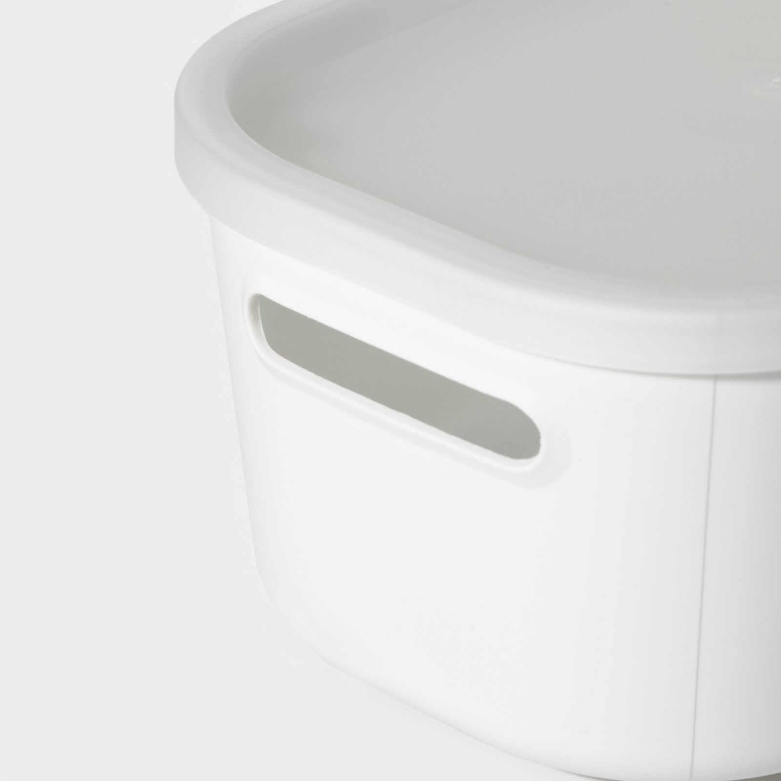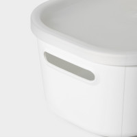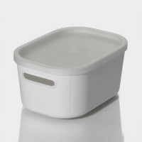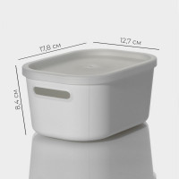 Array. Контейнер для хранения пригодится в каждом доме. Благодаря ему можно стилизовать любое помещение, убрать визуальный шум и уберечь вещи от различных внешних факторов. Он прочный и долговечный, так как изготовлен из высококачественного пластика. Он имеет прямоугольную форму и компактные размеры, что позволяет удобно разместить его на полке в шкафу или антресоли. Контейнер оснащен плотной крышкой, которая надежно защищает содержимое от попадания пыли, влаги и грязи. Кроме того, крышка из бамбука придает контейнеру стильный и современный вид. В таком контейнере можно хранить различные вещи, включая одежду, обувь, аксессуары и даже электронику. Благодаря своему универсальному дизайну, контейнер легко впишется в любой интерьер и станет его гармоничным дополнением. Цвет: Белый Ширина, см: 12.7 Высота, см: 8.4 Глубина, см: 8.4 Крышка: Да Материал: Пластик Колёса/ролики: Нет Вид: Контейнер  развернуть описание ▼