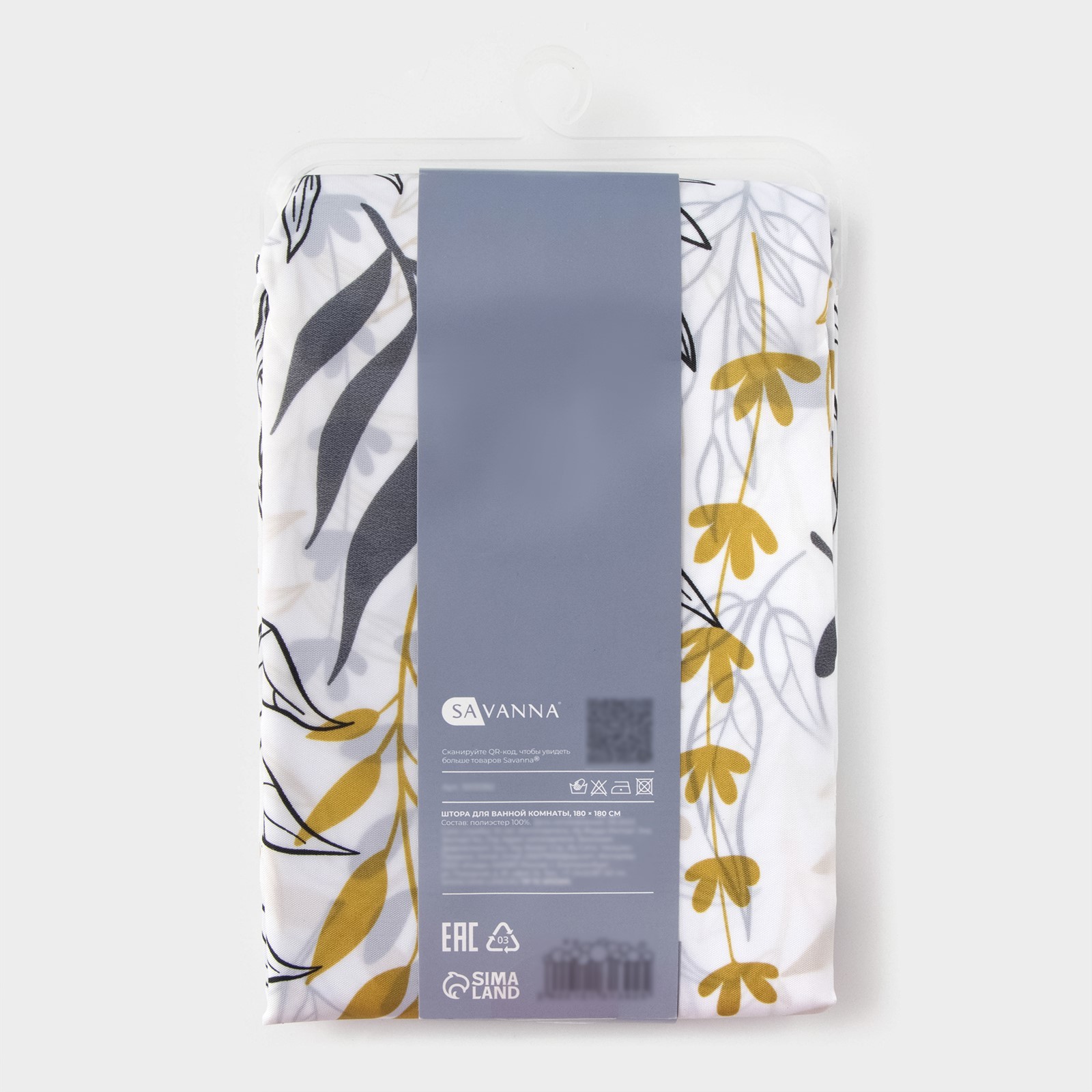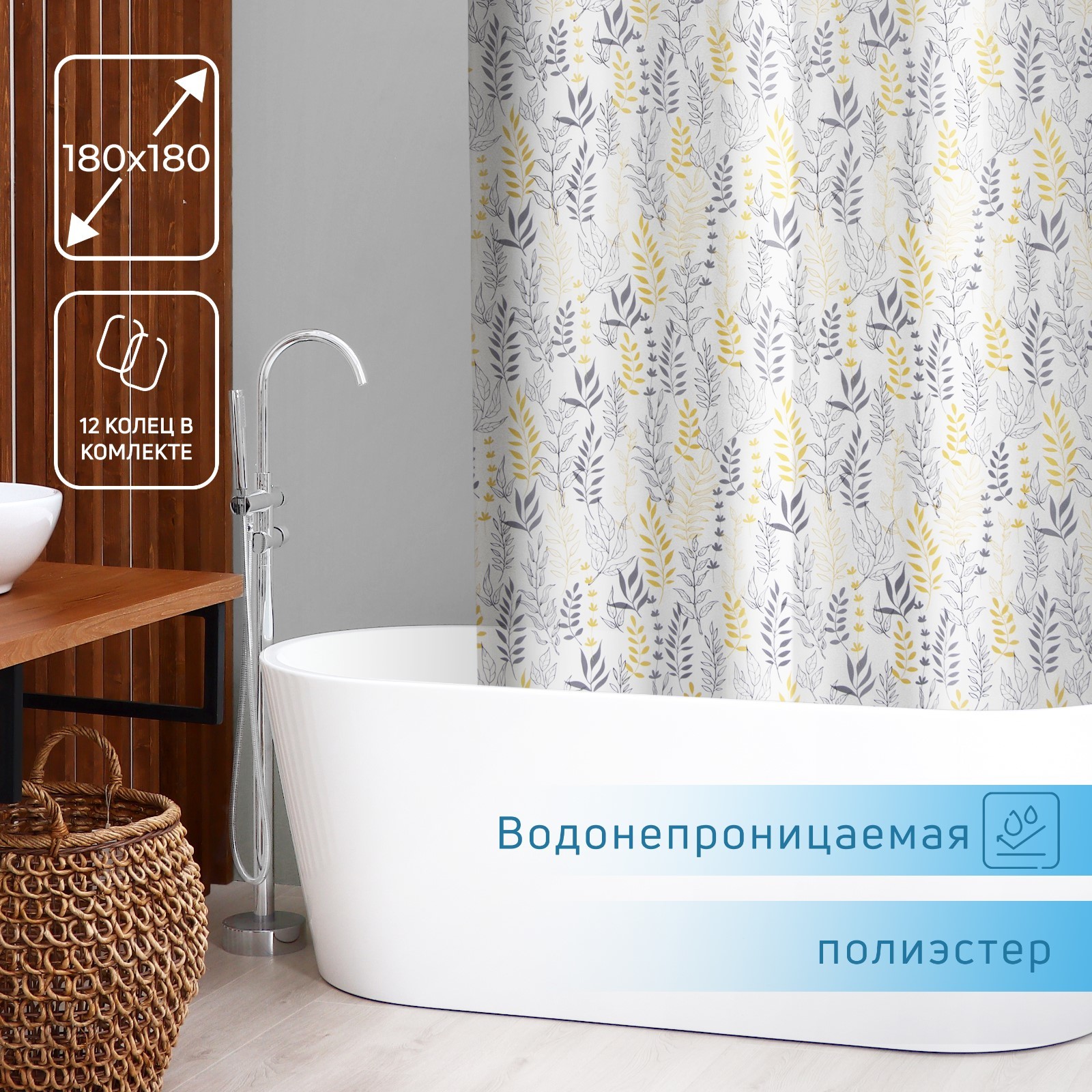 Штора для ванной 180х180 см, полиэстер