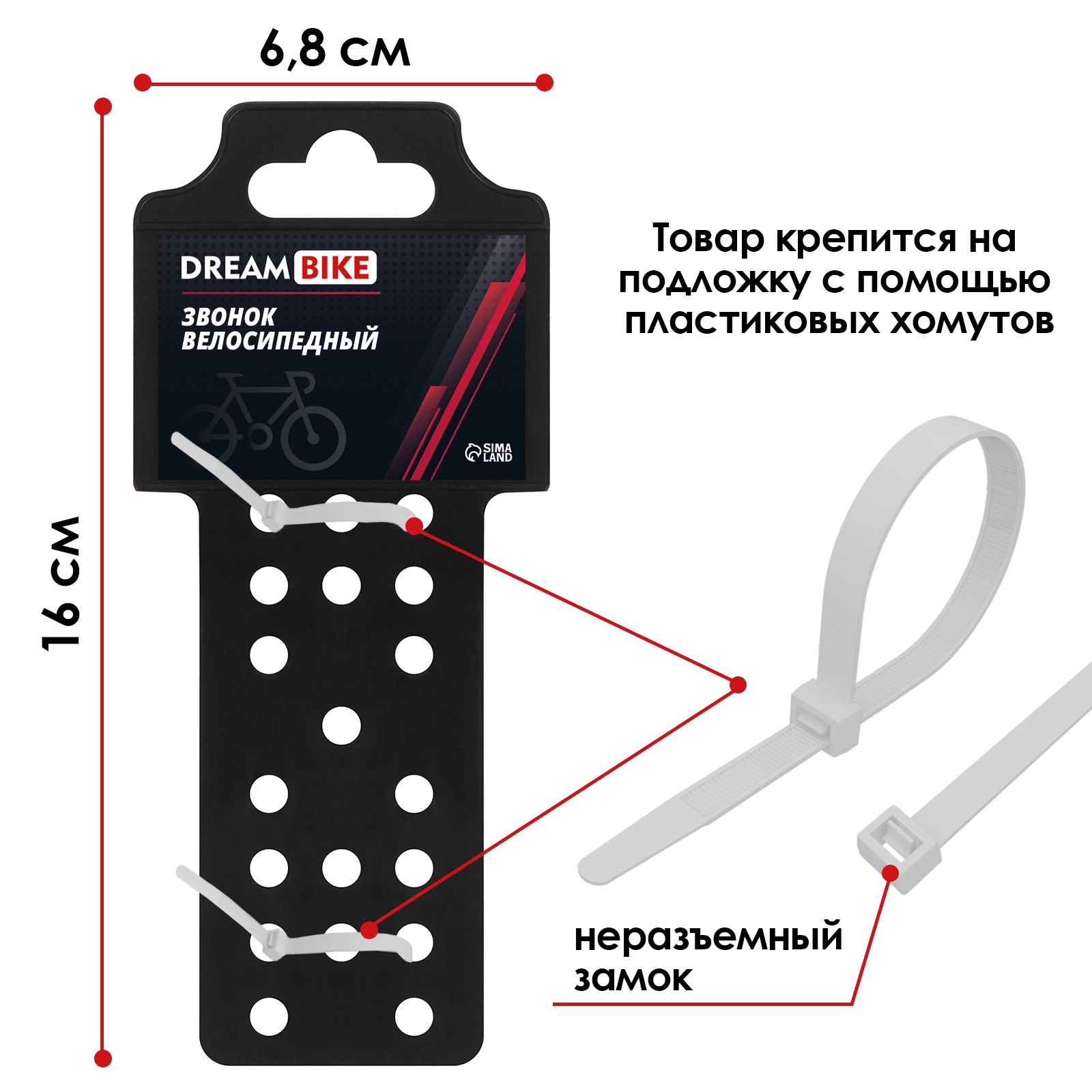 Звонок велосипедный Dream Bike «кольцо», цвет красный
