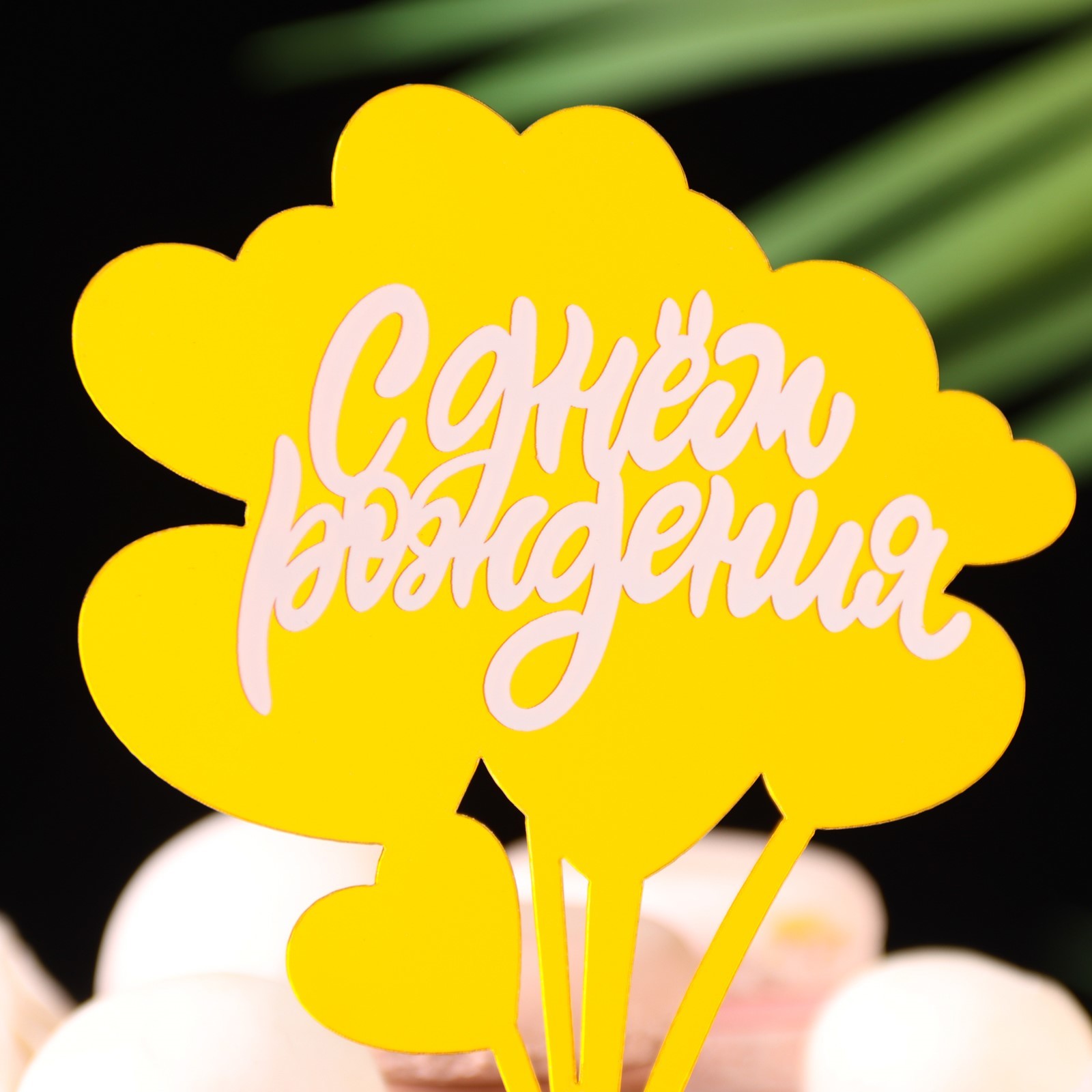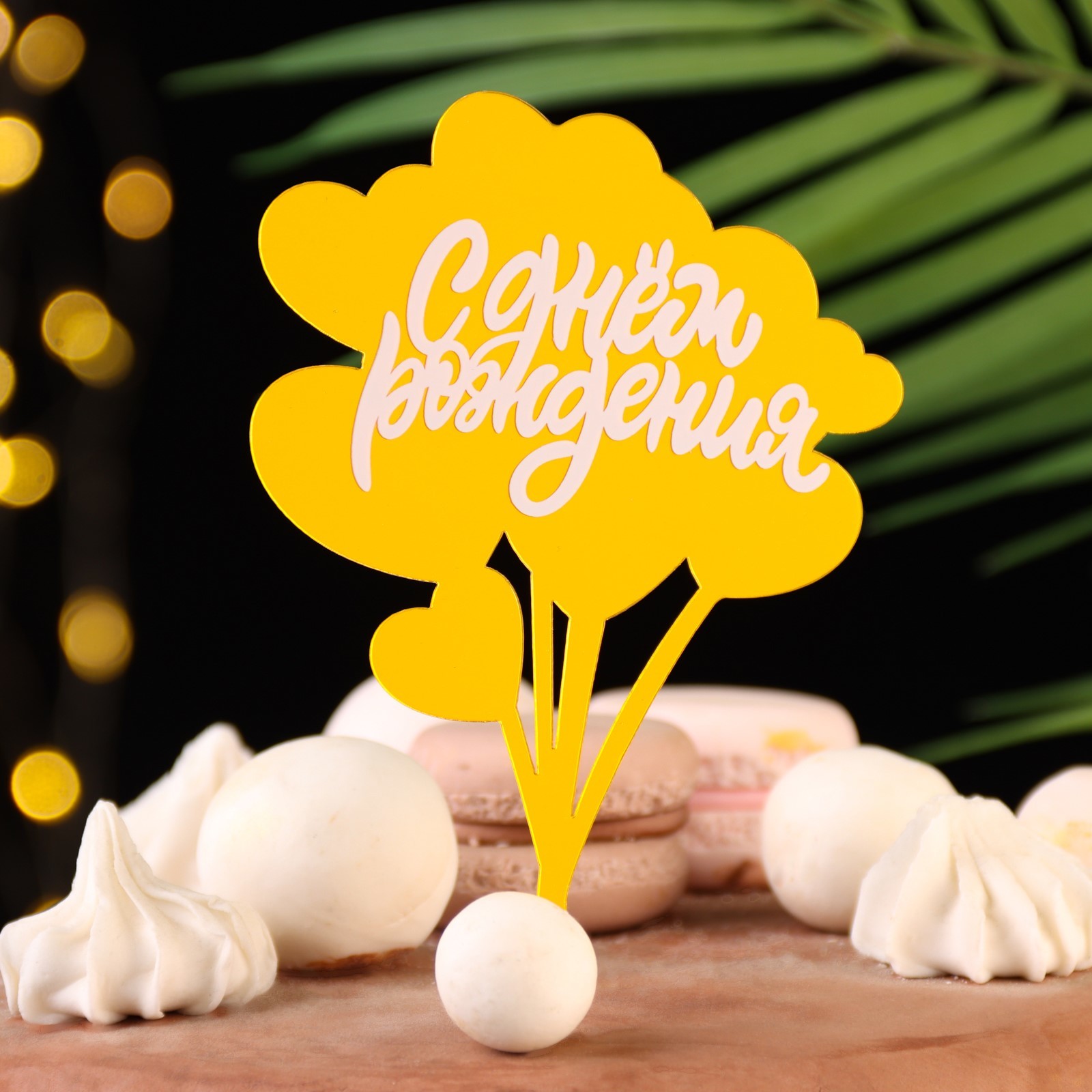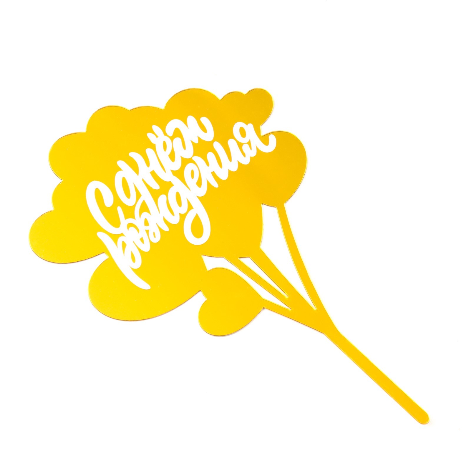 Топпер "с днём рождения.сердца", золотой с белым, дарим красиво