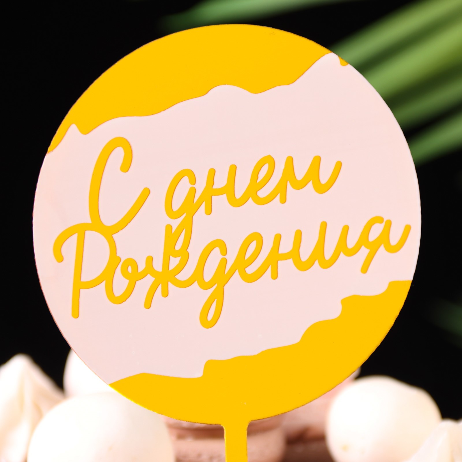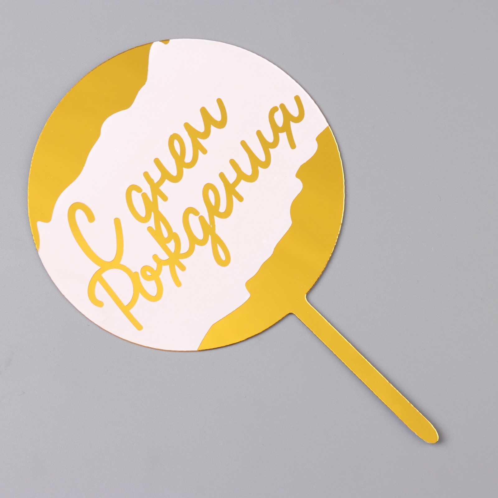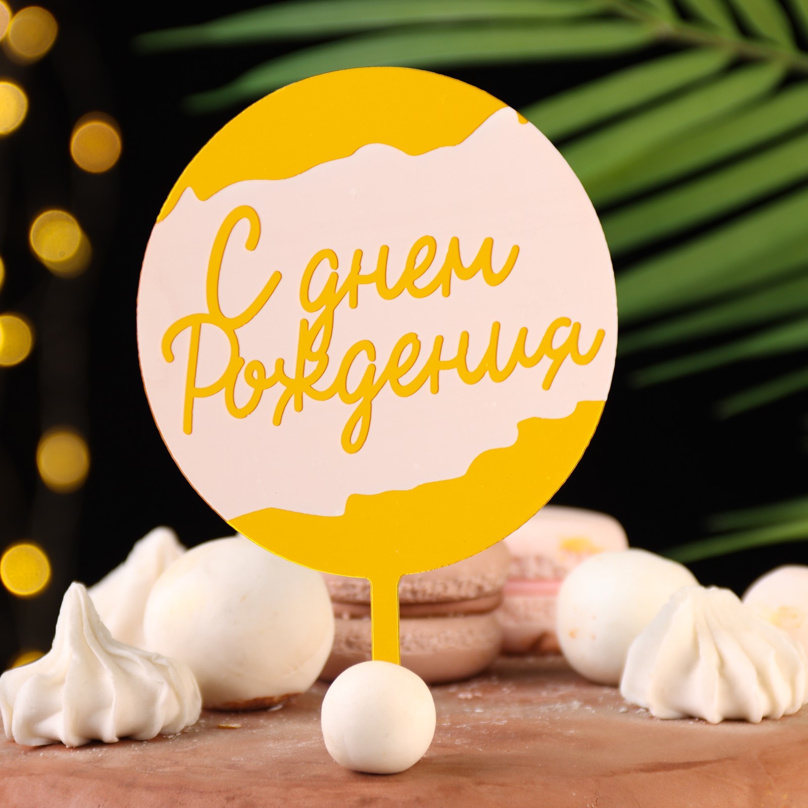 Топпер "с днём рождения", белый с золотом, дарим красиво