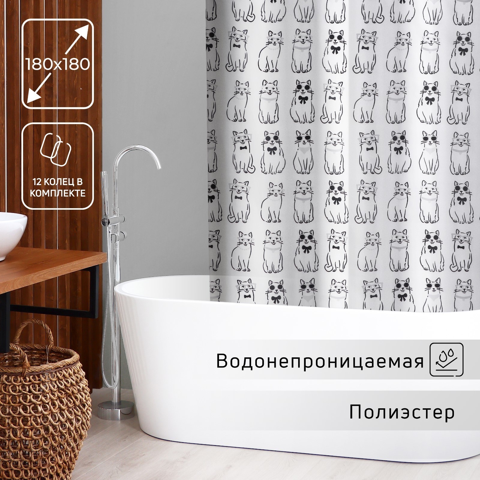 Штора для ванноы доляна Cats, 180x180 см, полиэстер, цвет белый