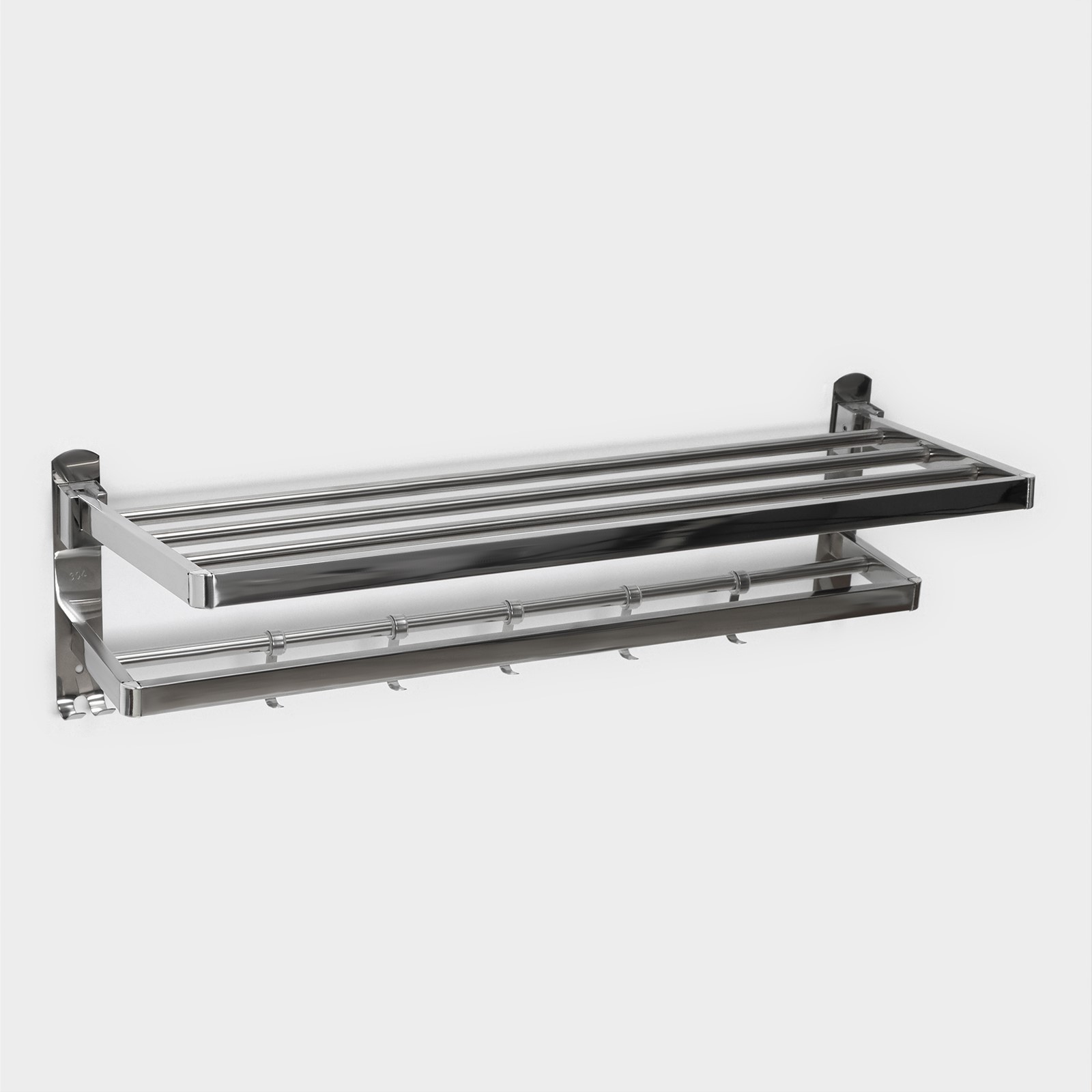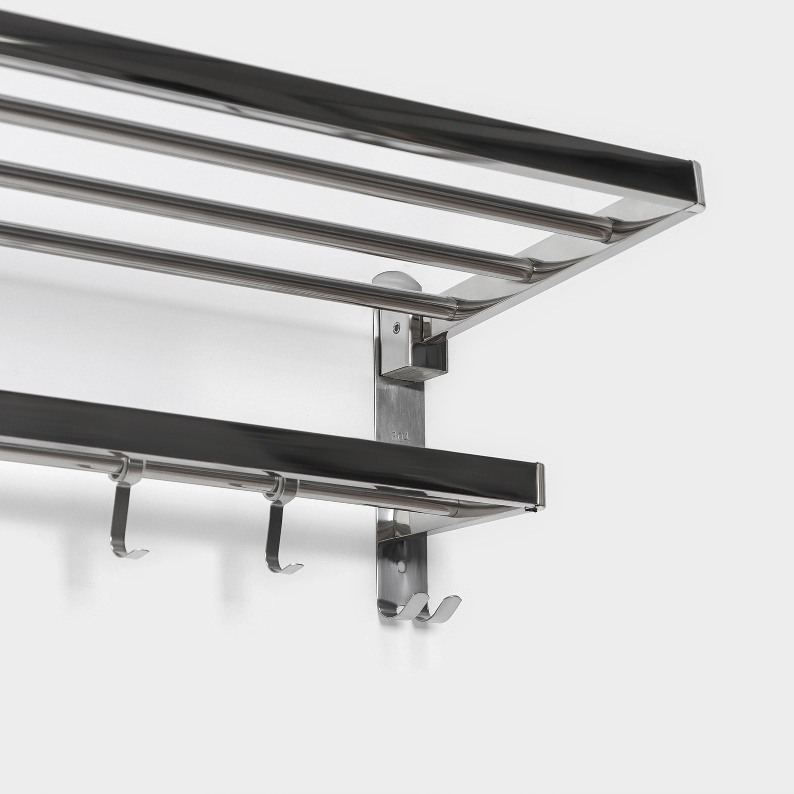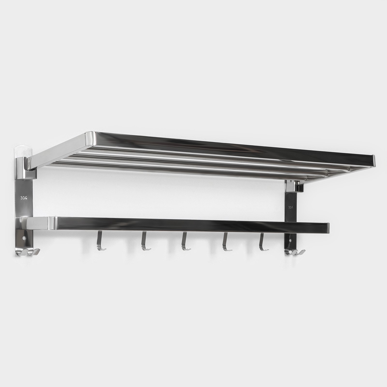 Полка откидная с держателем полотенец, 5 двигающихся крючков, цвет серебристый