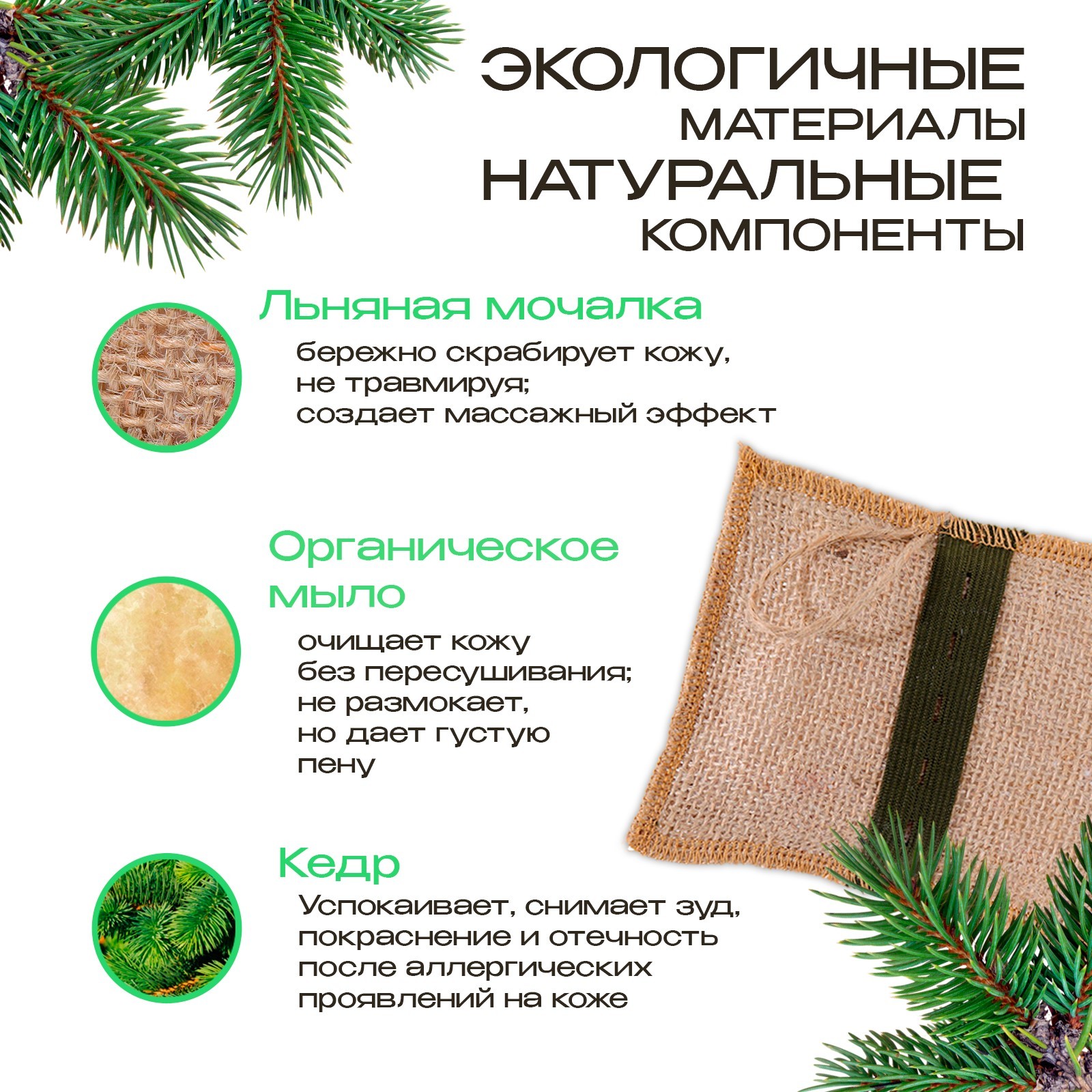 Мочалка льняная с натуральным мылом «кедровая», 110 г. Использование живицы кедровой рекомендовано людям с разными типами кожи, она прекрасно впитывается в кожу и способствует заживлению ран и эрозий на коже и слизистых оболочках после травм, ожогов и воспалительных процессов. Успокаивает, снимает зуд, покраснение и отечность после аллергических проявлений на коже. Состав: омыленное масло кокоса, стеариновая кислота, бетаин, глицерин, вода, соль, стопроцентная кедровая живица. Способ применения: хорошо намочить мочалку, растереть в руках до появления густой мягкой пены, использовать на влажное тело. После применения не отжимать, желательно хранить в подвешенном состоянии. Вес: 110г. Срок хранения: 2 года с даты производства при температуре не более 50°С. Цвет: Бежевый Цвет: Коричневый Вес, г/Объём, мл: 110 Вид: Мочалка с органическим мылом Материал: Лён Аромат: Кедр Тип: Твёрдое Вид мыла: Органическое : 0 Температурное ограничение: Нет Товар 18+: Нет  развернуть описание ▼