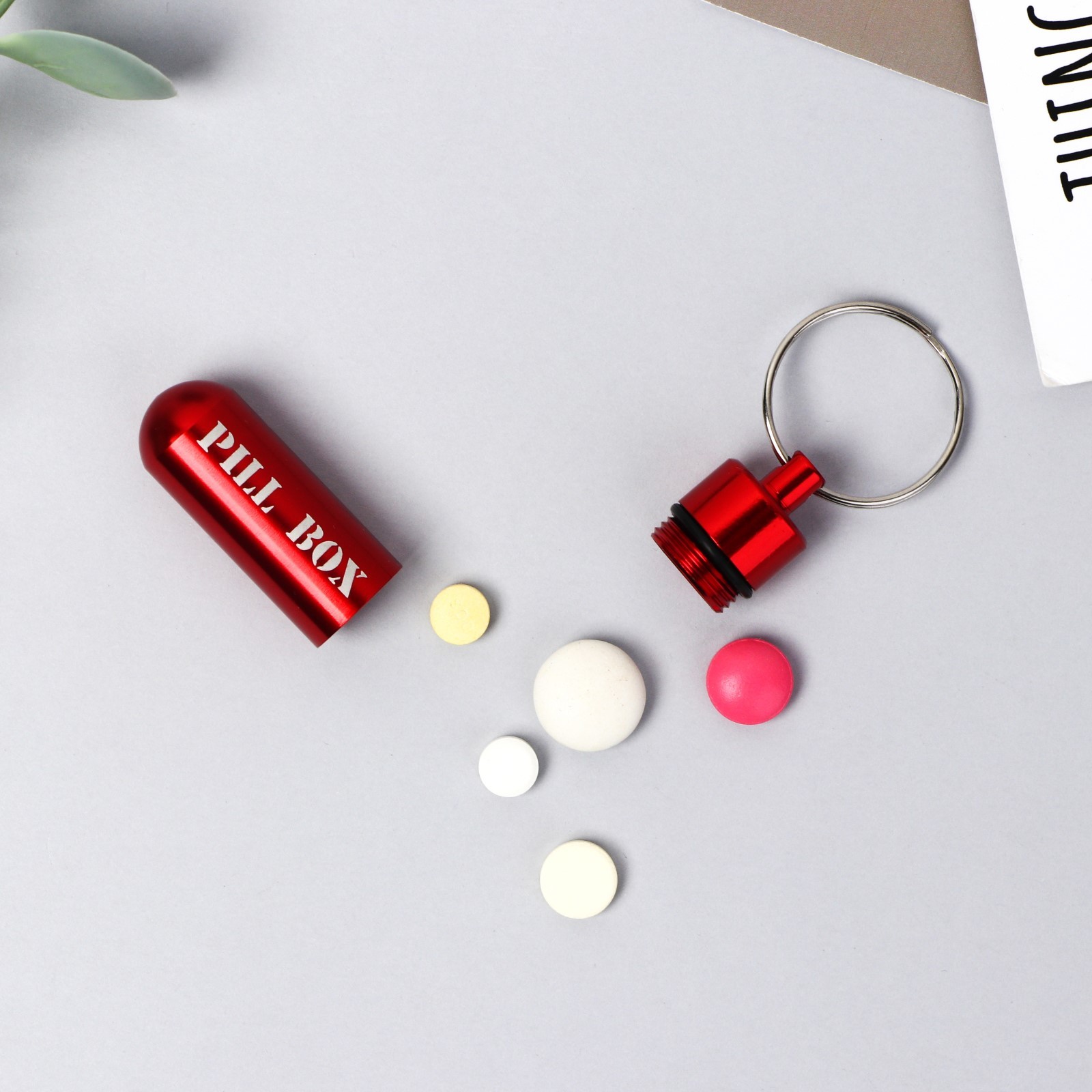 Таблетница брелок Pill Box, красная, 1,4 х 5,2 см.