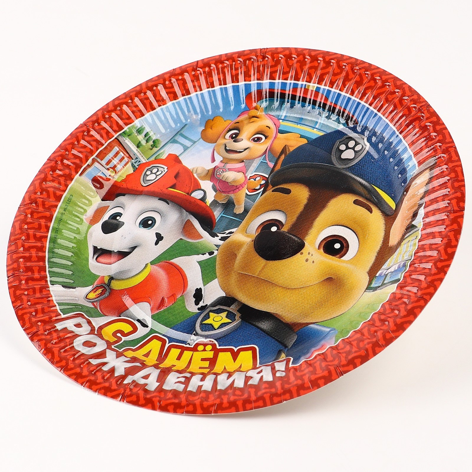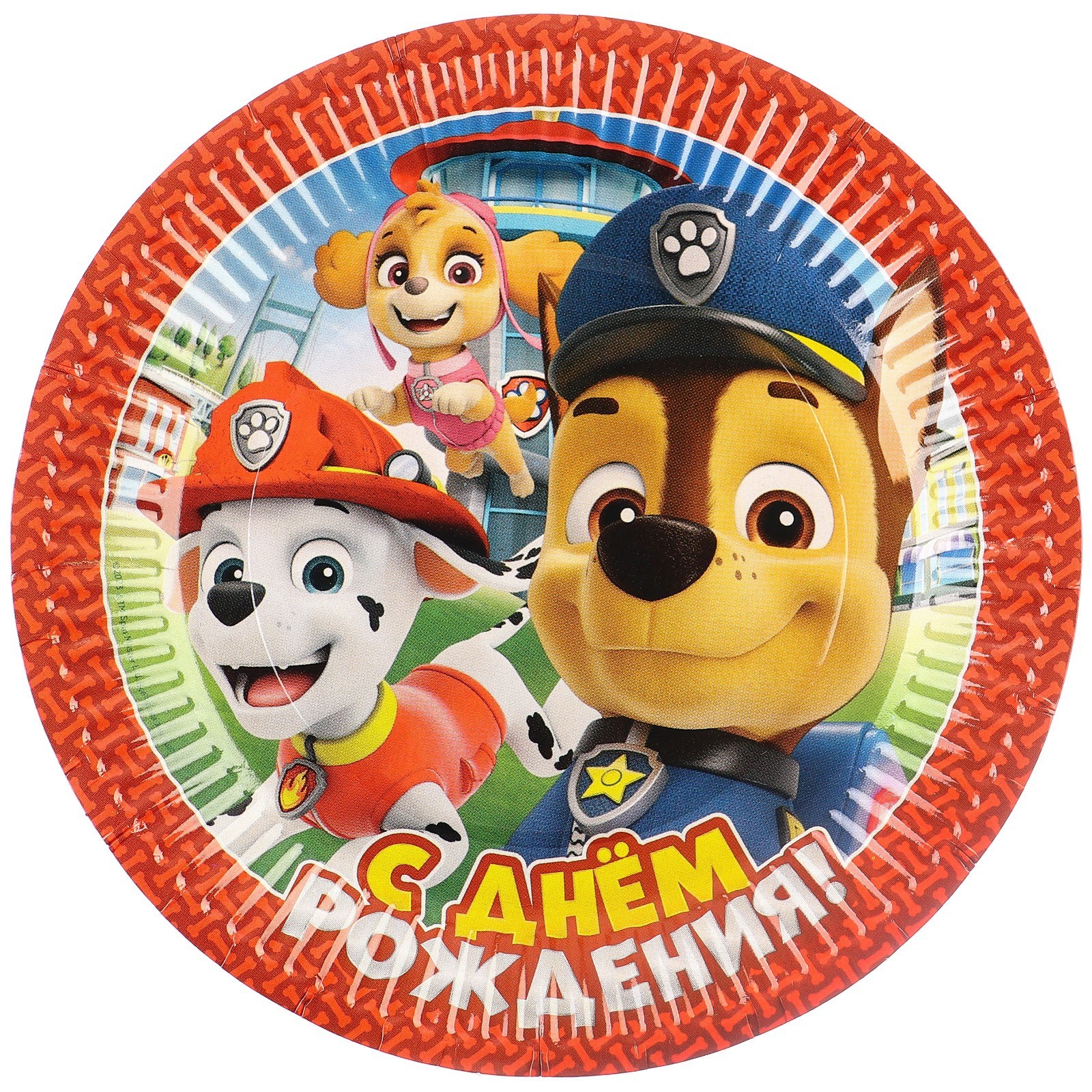 Тарелка бумажная "с днем рождения!", щенячий патруль 18 см