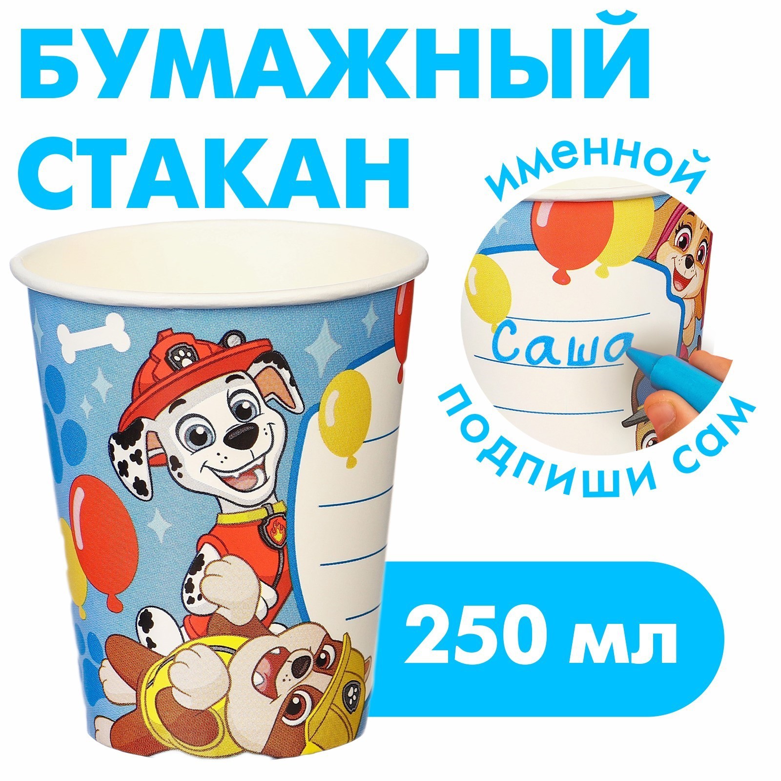 Стакан бумажный "с днем рождения!", 250 мл, щенячий патруль