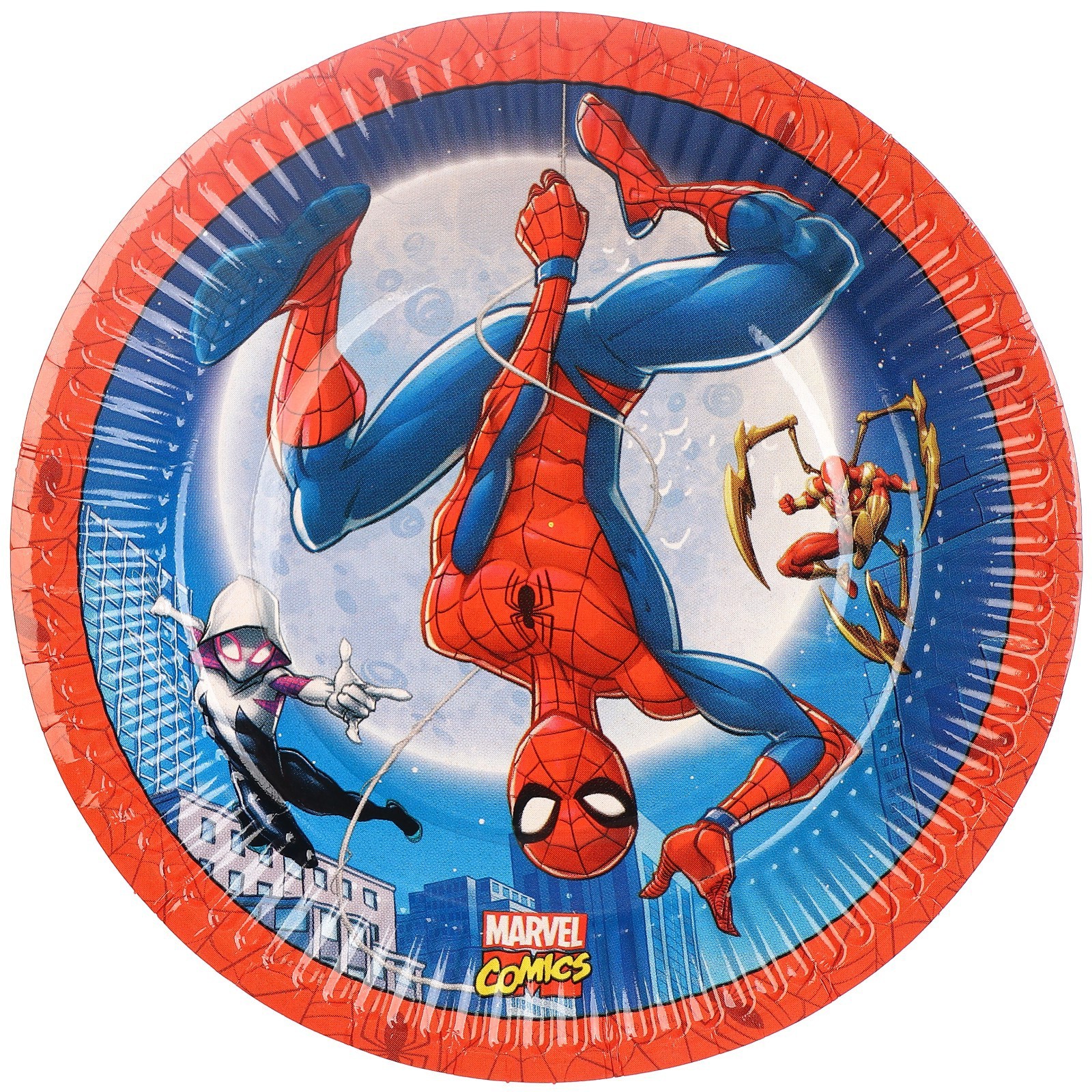 Тарелка бумажная "с днем рождения!", 18 см, человек-паук