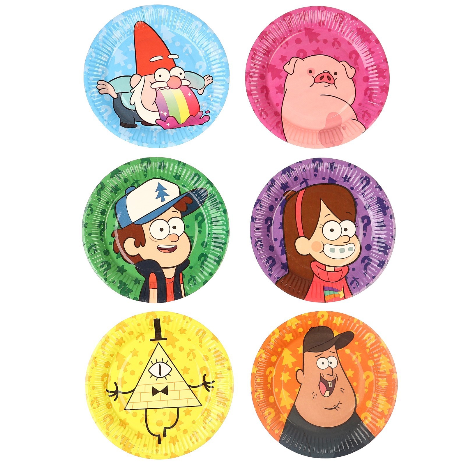 Тарелка бумажная "с днем рождения!", 18 см, 6 штук, гравити фолз
