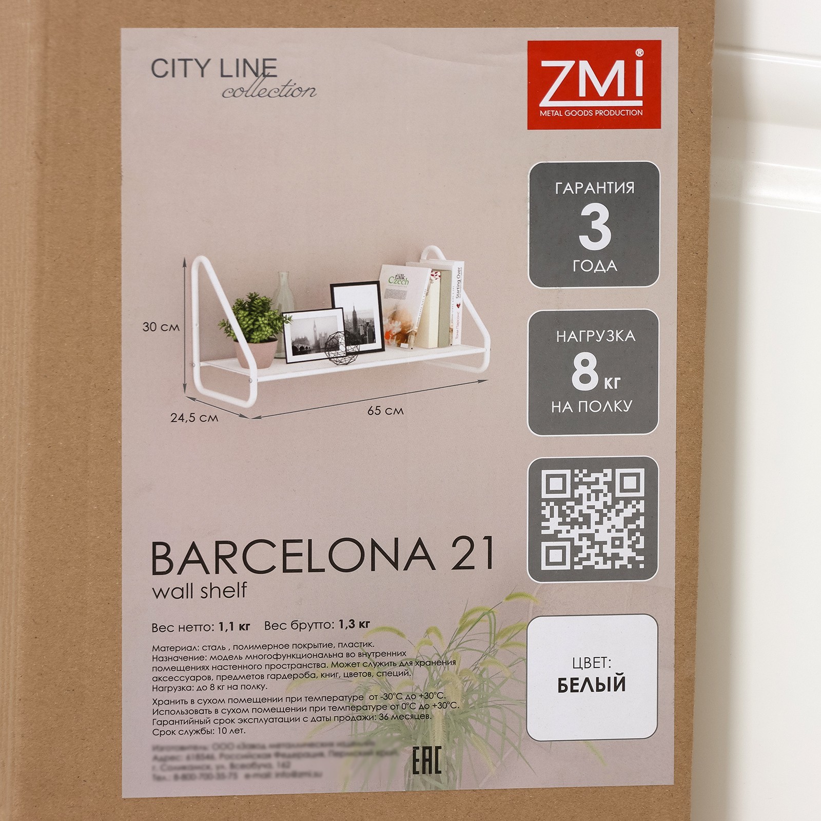 Полка настенная «барселона 21», 65x24,5x30 см, цвет белый