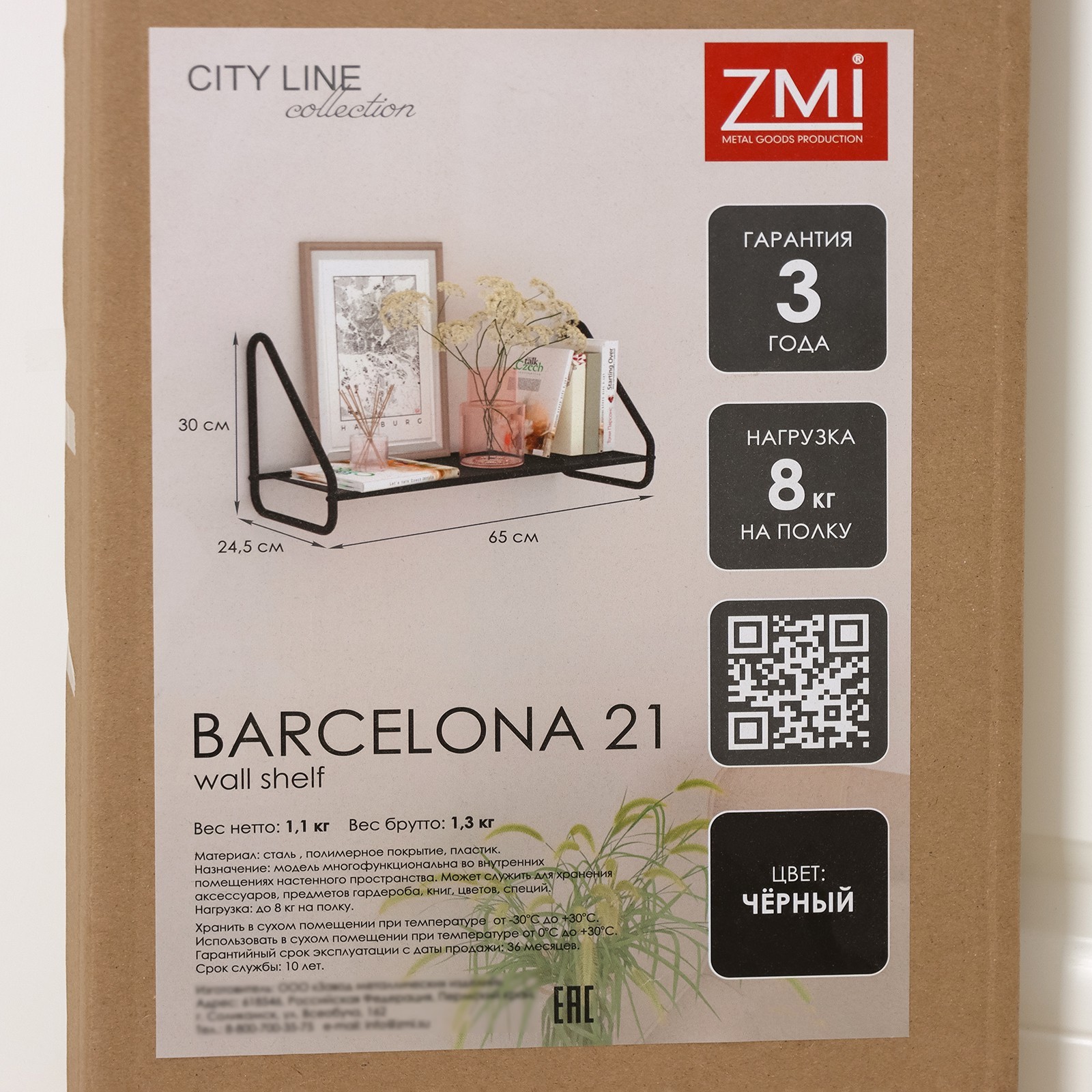 Полка настенная «барселона 21», 65x24,5x30 см, цвет чёрный