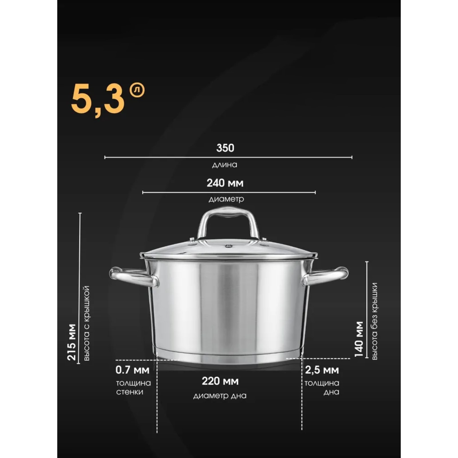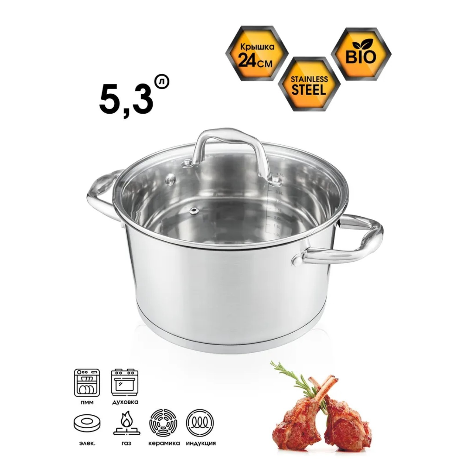 Кастрюля Winner Florence, 5.3, D=24 см, с крышкой